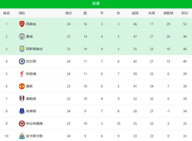 อันดับพรีเมียร์ลีก: อาร์เซนอล ซึ่งได้ทำการแข่งขันครบทุกนัดก่อนทีมอื่นหนึ่งรอบ ขณะนี้นำหน้าแมนเชสเตอร์ ซิตี้ และแอสตัน วิลล่า อยู่เจ็ดคะแนนเชลซีคว้าชัยชนะ 3-2 อย่างพลิกกลับมาจากความเสียเปรียบเหนือเวสต์แฮม ยูไนเต็ด ในบ้าน ขยายสถิติชนะติดต่อกันในทุกรายการเป็น 5 นัด และไต่ขึ้นสู่อันดับ 4 ของตารางคะแนน ลิเวอร์พูลแซงหน้าแมนเชสเตอร์ ยูไนเต็ด ขึ้นมาอยู่อันดับ 5 หลังจากพลิกกลับมาชนะนิวคาสเซิล ยูไนเต็ด 4-1 โดยยูไนเต็ดยังไม่ได้ลงเล่นในรอบนี้ ทำให้หล่นไปอยู่อันดับ 6 ด้วยคะแนนห่างกันเพียง 2 คะแนนระหว่างอันดับ 4 ถึง 6 การแข่งขันเพื่อชิงตำแหน่งท็อปโฟร์กำลังเข้มข้นขึ้น