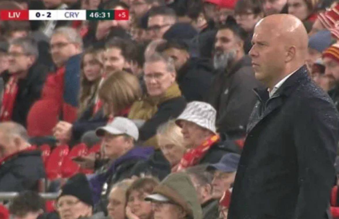 ในการแข่งขันนี้ ทีมลิเวอร์พูลที่หมุนเวียนผู้เล่นถูกกดดันอย่างหนักโดยคริสตัล พาเลซ ตลอดทั้งเกม ทีมหงส์แดงสามารถยิงเข้ากรอบได้เพียงครั้งเดียว ซึ่งเป็นสถิติที่น่าอับอาย หลังจากเสียประตูที่สาม สลอตต์ปรบมืออย่างแรงเพื่อเป็นกำลังใจให้กับนักเตะดาวรุ่งของเขา จากอัฒจันทร์ แฟนบอลพาเลซตะโกนเยาะเย้ยเขาด้วยเพลง "พรุ่งนี้เช้าคุณจะถูกไล่ออก"