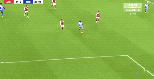 ในนาทีที่ 10 กลยุทธ์การเตะมุมของอาร์เซนอลไม่เป็นผล และไบรท์ตันก็โต้กลับอย่างรวดเร็วทันที ความพยายามในการยิงเดี่ยวของซิมาสก็ถูกกีดขวางโดยเกป้าเช่นกัน