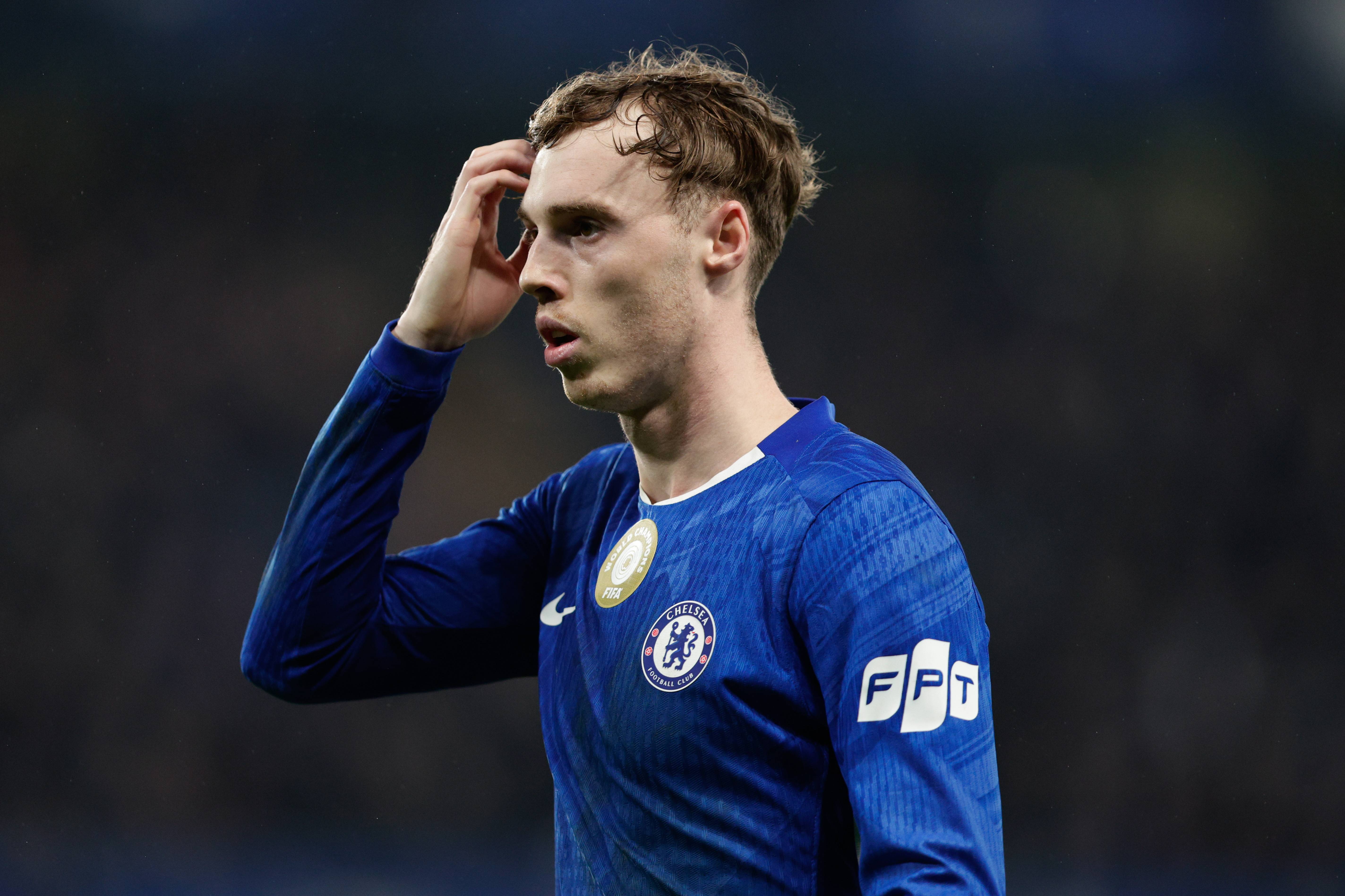 เมื่อวันที่ 10 กุมภาพันธ์ เมสัน พาล์เมอร์ นักเตะเชลซี ระหว่างการแข่งขัน. Xinhua/EPA