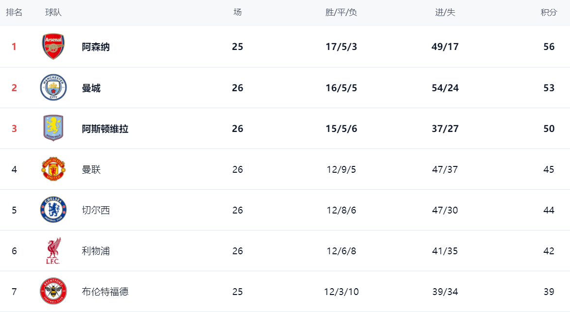 อันดับล่าสุดพรีเมียร์ลีก: ซิตี้ไล่จี้อาร์เซนอลอย่างใกล้ชิด, ลิเวอร์พูลเฉือนชนะอย่างหวุดหวิด, วิลล่าคว้าชัยในนาทีสุดท้าย แมนเชสเตอร์ ยูไนเต็ด, เชลซี