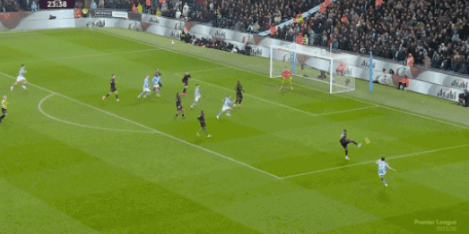 หกนาทีต่อมา เซเมนิโอก็ยิงประตูได้อีกครั้ง เธอพาบอลขึ้นทางด้านซ้ายในจังหวะโต้กลับ ก่อนจะจ่ายบอลให้กับโอไรลีย์ที่กำลังวิ่งเข้ามา ซึ่งยิงบอลเข้าประตูจากมุมแคบ ทำให้ทีมขึ้นนำเป็นสองประตู ในนาทีที่ 39 แมนเชสเตอร์ ซิตี้ได้ครองบอลและเล่นบอลไปข้างหน้าอย่างรวดเร็วให้กับผู้เล่นแนวรุก โฟเดนจ่ายบอลออกไปนอกเขตโทษเล็กน้อยฮาแลนด์ยิงเข้าประตูจากระยะเผาขนทำให้สกอร์เป็น 3-0 ด้วยประตูนี้ ฮาแลนด์ทำประตูในพรีเมียร์ลีกครบ 107 ประตู เทียบเท่ากับตำนานของแมนเชสเตอร์ ยูไนเต็ด พอล สโคลส์ และขยับขึ้นมาอยู่อันดับที่ 31 ในตารางทำประตูสูงสุดตลอดกาล