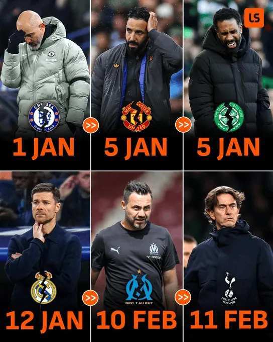 ใครจะเป็นรายต่อไป? วงการฟุตบอลยุโรปเผชิญคลื่นการเปลี่ยนแปลงผู้จัดการทีมในช่วงต้นปี สโมสร 'บิ๊กซิกส์' สามทีมในพรีเมียร์ลีกแต่งตั้งโค้ชคนใหม่ แฟรงค์ อโมลิน, ท็อตแน่ม ฮ็อทสเปอร์