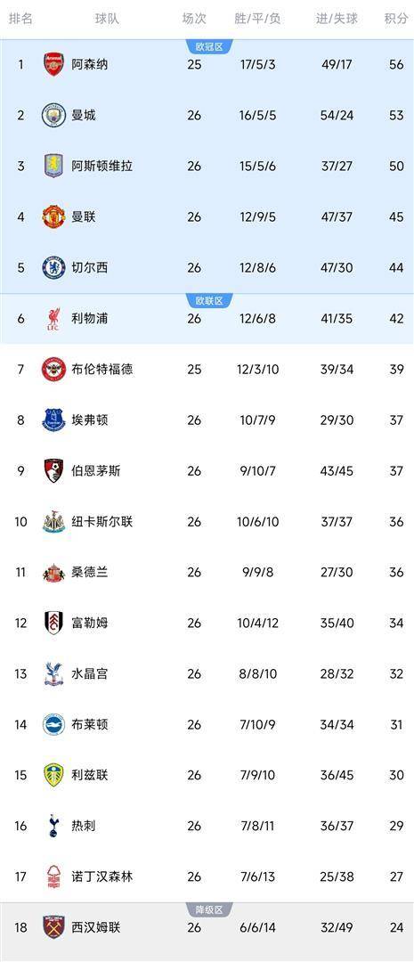 ในการแข่งขันพรีเมียร์ลีกอื่น ๆ ในสัปดาห์ที่ 26 อาร์เซนอลจะพบกับวูล์ฟแฮมป์ตัน วันเดอเรอร์ส ในเกมเยือน หากชนะจะกลับมานำแมนเชสเตอร์ซิตี้อีกครั้ง แมนเชสเตอร์ยูไนเต็ดเอาชนะแอสตันวิลล่าทีมสำรองในบ้าน 2-1 ทำให้มีคะแนนรวม 48 คะแนนและยึดอันดับสี่ไว้ได้ เชลซีเสมอกับเบรนท์ฟอร์ด 1-1 ในเกมเยือน ยังคงอยู่อันดับห้าด้วยคะแนน 45 คะแนน