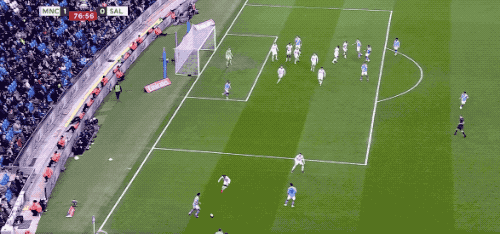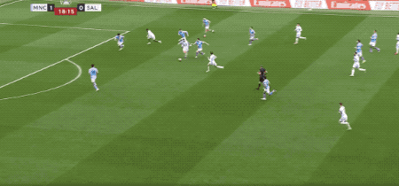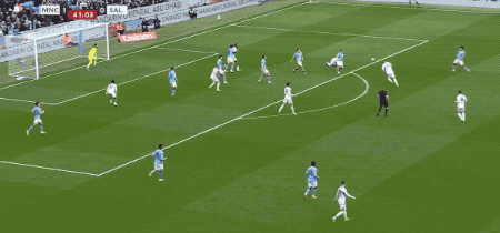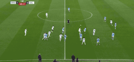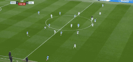 ในนาทีที่ 38 ขณะที่เผชิญหน้ากับแนวรับที่แน่นหนาของซอลฟอร์ด โฟเดนเลือกที่จะยิงไกลจากขอบเขตโทษ แต่บอลลอยข้ามคานออกไป