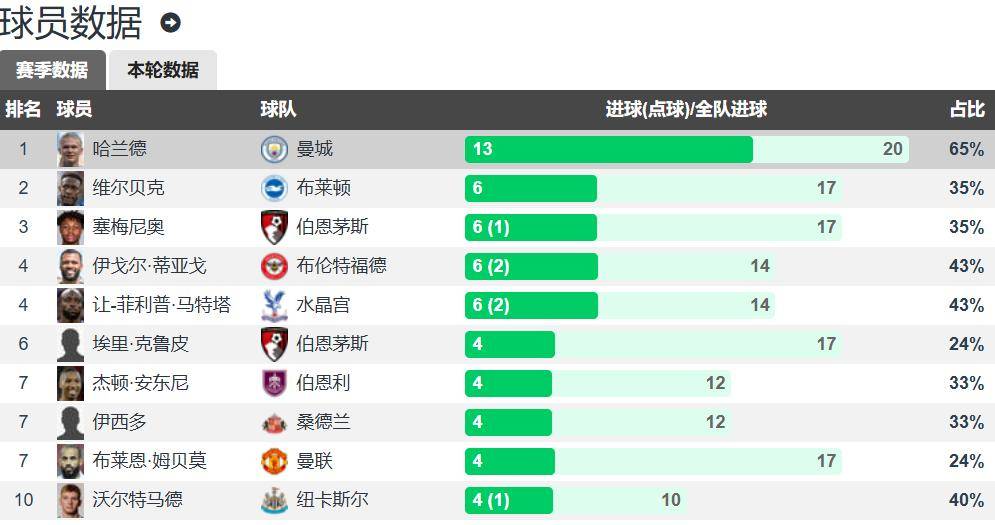 เมื่อฤดูกาลที่แล้ว โมฮาเหม็ด ซาลาห์ ผู้ชนะรางวัลรองเท้าทองคำพรีเมียร์ลีก และอเล็กซานเดอร์ อิซัค ผู้ได้รางวัลรองชนะเลิศ ต่างประสบปัญหาฟอร์มตก และอิซัคยังถูกขัดขวางโดยปัญหาการย้ายทีมและอาการบาดเจ็บ ทำให้เออร์ลิง ฮาลันด์ กลายเป็นผู้นำในตารางทำประตูของพรีเมียร์ลีกฤดูกาลนี้อย่างชัดเจน ด้วยจำนวนประตู 13 ประตู ทำให้เขาอยู่ห่างจากผู้เล่นอันดับสองอย่างแดนนี เวลเบค ถึง 7 ประตู หากจะพูดตามตรง หากฮาลันด์ยังคงมีสุขภาพแข็งแรง การแข่งขันเพื่อชิงรางวัลรองเท้าทองคำพรีเมียร์ลีกในฤดูกาลนี้ก็แทบจะตัดสินไปแล้ว