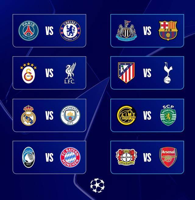 หลังจากการจับสลาก การแข่งขันยูฟ่าแชมเปียนส์ลีก รอบ 16 ทีมสุดท้ายสำหรับฤดูกาลนี้ได้รับการยืนยันแล้ว: ปารีส แซงต์-แชร์กแมง พบ เชลซี กาลาตาซาราย พบ ลิเวอร์พูล เรอัล มาดริด พบ แมนเชสเตอร์ ซิตี้ อตาลันต้า พบ บาเยิร์น มิวนิค นิวคาสเซิล ยูไนเต็ด พบ บาร์เซโลนา แอตเลติโก มาดริด พบ ท็อตแนม ฮ็อตสเปอร์ โบโด/กลิมท์ พบ สปอร์ติ้ง ลิสบอน ไบเออร์ เลเวอร์คูเซน พบ อาร์เซนอล