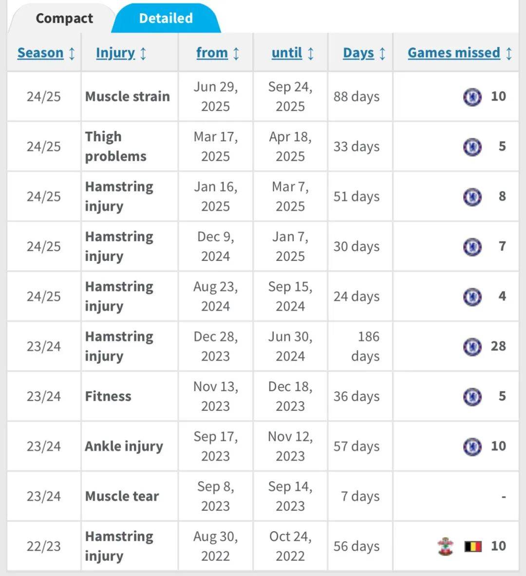 แม้ Maresca จะใช้ความระมัดระวังอย่างสูงสุดในการส่งกองกลางวัย 21 ปีรายนี้ลงสนาม แต่เขาก็ต้องประสบกับอาการบาดเจ็บอีกครั้ง ตลอดสองฤดูกาลที่ผ่านมา แฟนบอลเชลซีต่างชินชากับข่าวอาการบาดเจ็บของ Lavia ไม่ใช่เรื่องเกินจริงที่จะกล่าวว่า Lavia วัย 21 ปี กลายเป็นนักเตะที่บาดเจ็บมากที่สุดในพรีเมียร์ลีก การที่เชลซีทุ่มเงิน 60 ล้านยูโรเพื่อคว้าตัวเขามาในช่วงซัมเมอร์ปี 2023 ดูเหมือนจะกลายเป็นภาระของสโมสรไปแล้ว