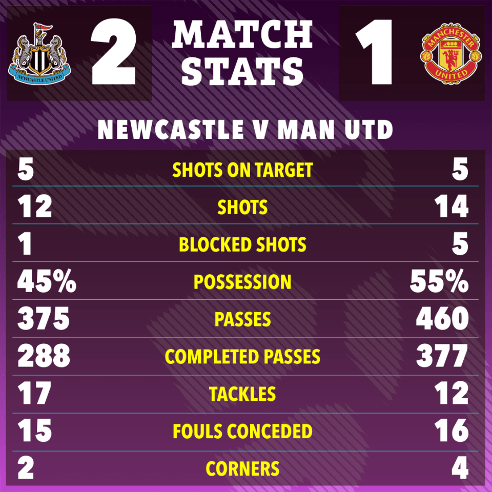 ดูเหมือนว่าจะเป็นแรงบันดาลใจให้จิตวิญญาณการต่อสู้ของเจ้าบ้าน กอร์ดอน ยอดดาวยิง 10 ประตูในแชมเปี้ยนส์ลีก ฤดูกาลนี้ บุกทะลุซ้าย บรูโน่ เฟอร์นันเดซ ยืดเท้าเพื่อสกัดกั้นและสะดุดเขา และผู้ตัดสินก็เตะจุดโทษ กอร์ดอนถูกนำตัวไปตี และนิวคาสเซิลซึ่งเอาชนะผู้เล่นที่น้อยกว่าหนึ่งคน นำแมนเชสเตอร์ ยูไนเต็ด 1-0
