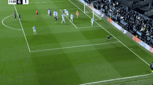 ในนาทีที่ 11 เรอัล มาดริดเตะมุมแทคติก กูแลร์ทำประตูข้าม และโจน อามีนีไม่ได้ทำเครื่องหมาย และยิงเสากลาง และบอลกระเด็นเข้าประตู