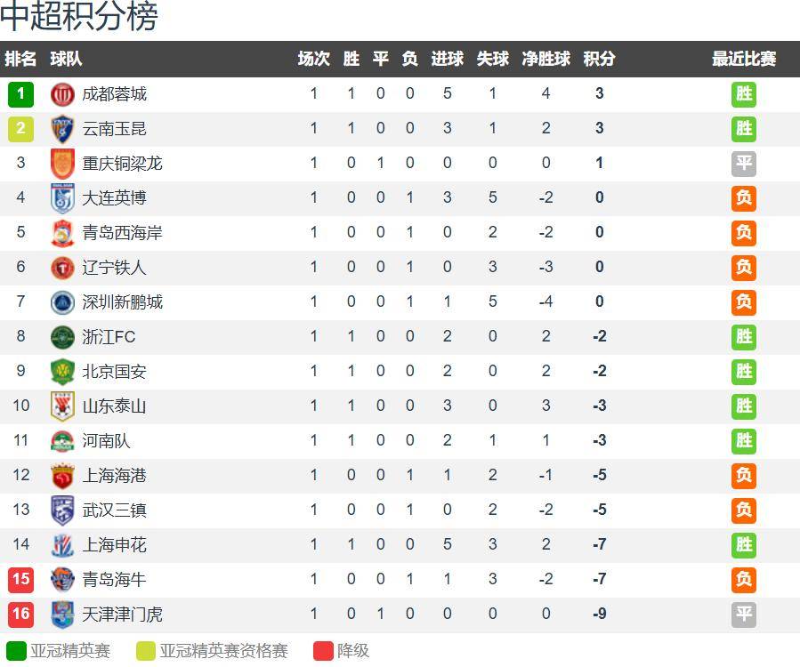 รอบแรกของฤดูกาล Chinese Super League จบลงแล้ว: แชมป์ป้องกันเปิดสีดำ, ศึก 8 ประตู Shenhua, 9 ทีมยังคงเป็นลบคะแนน_Chengcheng_Chengdu_Ranking