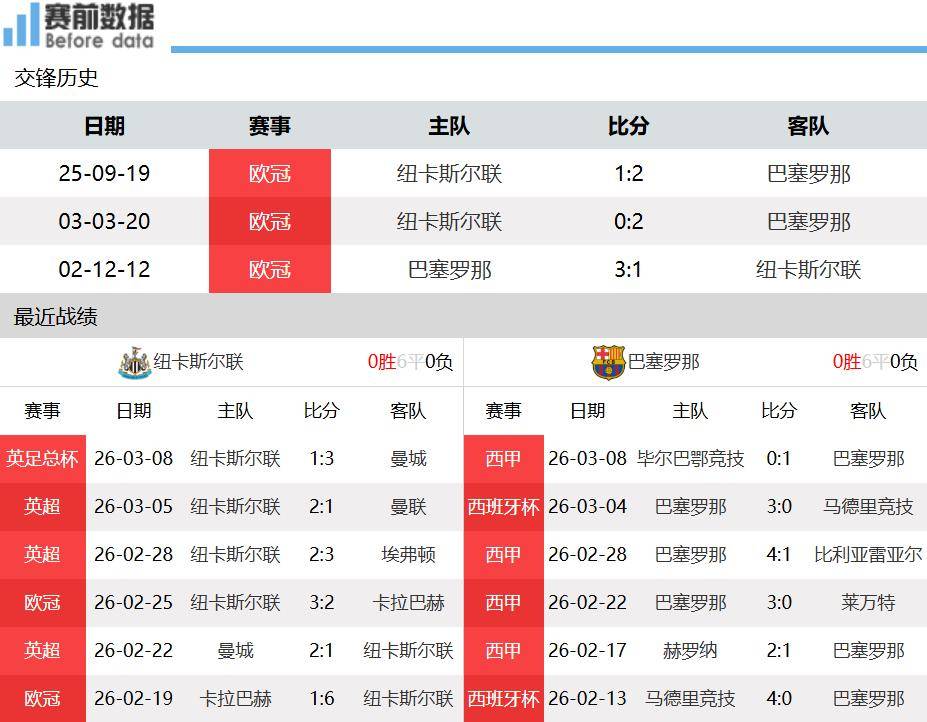 เมื่อเวลา 04.00 น. ของวันที่ 11 มีนาคม ตามเวลาปักกิ่ง ในรอบชิงชนะเลิศแชมเปี้ยนส์ลีก 1/8 รอบชิงชนะเลิศ นิวคาสเซิ่ลเล่นกับบาร์เซโลนาที่บ้าน