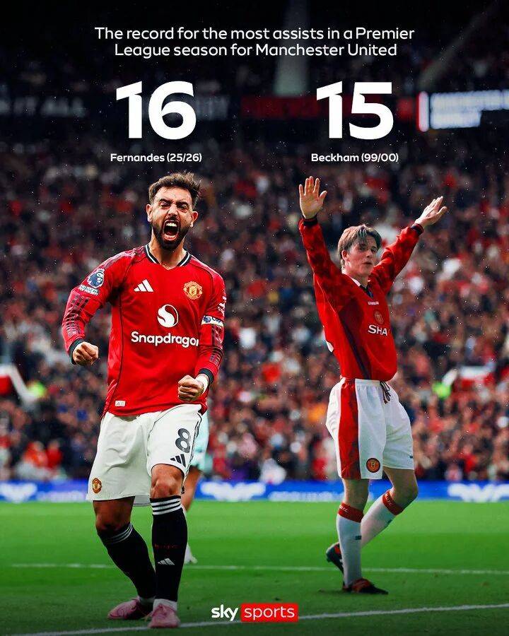 ในการเอาชนะแอสตัน วิลล่า 3-1 ของแมนเชสเตอร์ ยูไนเต็ด กัปตันบรูโน่ เฟอร์นันเดซ มีส่วนสนับสนุนอย่างมาก เขาส่งผู้ช่วยสองคน ไม่เพียงแต่วางชัยชนะเท่านั้น แต่ยังแซงหน้าสถิติสโมสรที่เบ็คแฮมเป็น 15 แอสซิสต์ในฤดูกาลเดียวเมื่อ 26 ปีที่แล้ว เร้ดเดวิลส์รูนี่ย์และผู้เล่นเอฟเวอร์ตัน Glaresh ต่างก็ยกย่องเกมของบีฟี่ที่ทุกคนชื่นชอบ