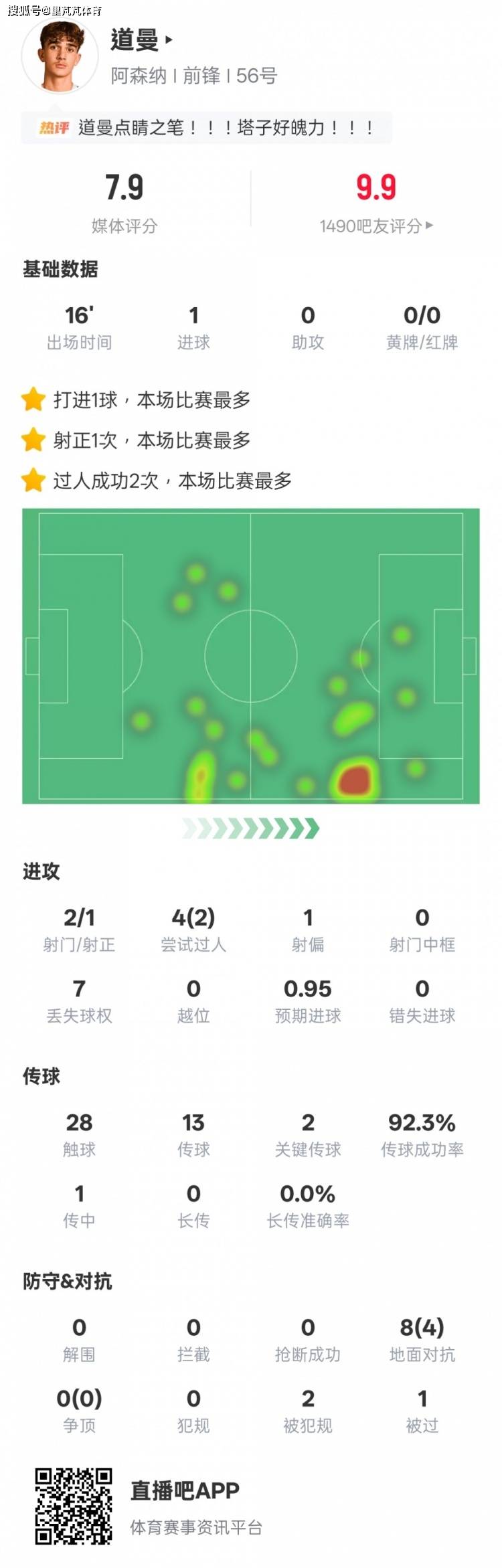 หลังจากทำคะแนน Douman ได้รีบวิ่งไปหา Yocres กอดเพื่อนร่วมทีมของเขาแน่นจากด้านหลัง และดึงส่วนหลังออกจาก "ชุดการแสดงออก" ฉากนี้กลายเป็นเชิงอรรถที่อบอุ่นที่สุดในคืนนี้ จะเห็นได้ว่า Daoman ต้องการชนะจริงๆ จะเห็นได้ว่าเขาสามารถได้สามแต้มในสายตาของเขา ไม่ยากเลยที่จะจินตนาการถึงสิ่งที่อาร์เตต้าพูดก่อนจะให้โอกาสเขา
