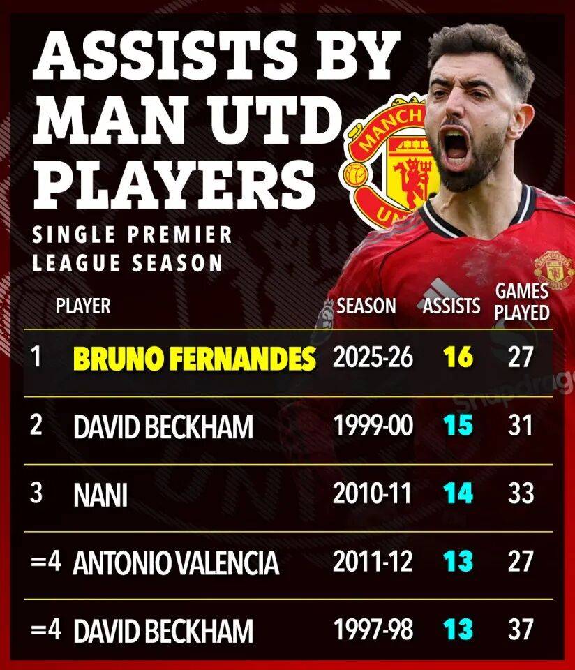 สิ่งที่ควรค่าแก่การกล่าวถึงก็คือ ด้วยความช่วยเหลือของเขาในการทำคะแนนสองครั้ง เขายังแซงหน้าสถิติแอสซิสต์ 26 ปีของแมนเชสเตอร์ ยูไนเต็ด เป็นเวลา 26 ปี ในฤดูกาล 1999/2000 เบ็คแฮมสนับสนุน 15 แอสซิสต์ในพรีเมียร์ลีก และตอนนี้บี-ฟีช่วย 16 ครั้ง