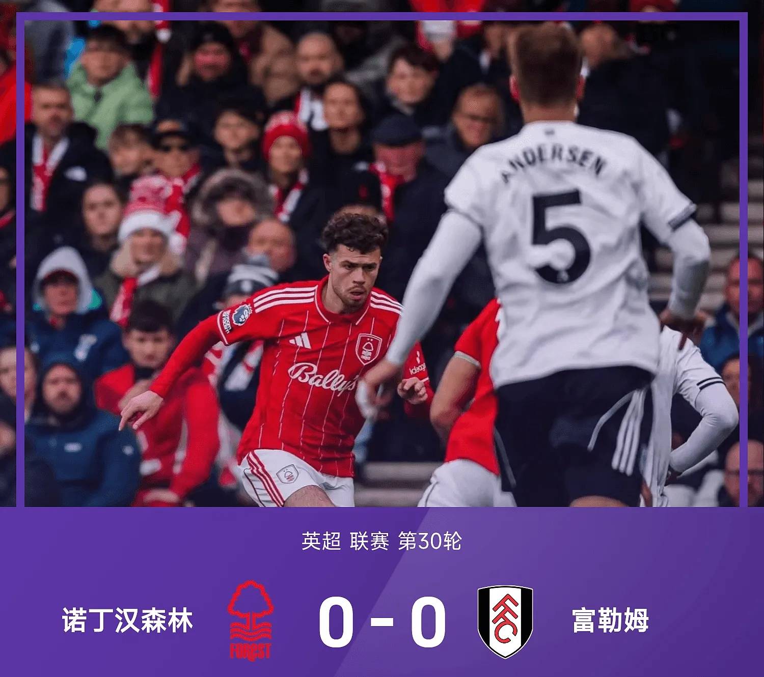 ในรอบที่ 30 ของฤดูกาลพรีเมียร์ลีกใน 25/26 น็อตติงแฮม ฟอเรสต์ ยิง 0-0 เสมอและเอาชนะฟูแล่ม ฟูแล่มมีโอกาสที่ดีในครึ่งแรก และเซียร์ซก็เซฟที่ยอดเยี่ยมให้บาซิในเขตโทษ ในช่วงครึ่งหลัง น็อตติงแฮม ฟอเรสต์ คว้าโอกาสดีๆมามากมาย อย่างแรก Ana ยิงคานประตูจากการยิงระยะไกล จากนั้น Endoye ยิงได้ครั้งเดียว แต่ VAR กระตุ้นให้ Endoye ล้ำหน้าด้วยความแตกต่างเล็กน้อย และประตูก็ไม่ถูกต้อง ก่อนจบเกม Avonii มีโอกาสได้มือเดียวอีกครั้ง แต่ยิงพลาด ในท้ายที่สุด น็อตติงแฮม ฟอเรสต์ เอาชนะฟูแล่ม 0-0 ที่บ้าน หลังเกมนี้ น็อตติงแฮม ฟอเรสต์ สะสม 29 แต้ม แซงหน้าเวสต์แฮมไปอยู่อันดับที่ 17 ด้วยผลต่างประตู และหนีออกจากโซนตกชั้นชั่วคราว ฟูแล่ม 41 แต้มอยู่ในอันดับที่สิบเอ็ดในลีกชั่วคราว
