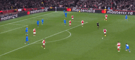 ในนาทีที่ 36 เลนกลางของ Arsenal ตรงกลางเลนกลางสำหรับโหม่งต่อเนื่อง Trosad พุ่งไปข้างหน้าและ Aze ใกล้ด้านบนของโค้ง หันกลับมายิงโดยตรงและยิงคลื่น Super World! อาร์เซนอล 1-0