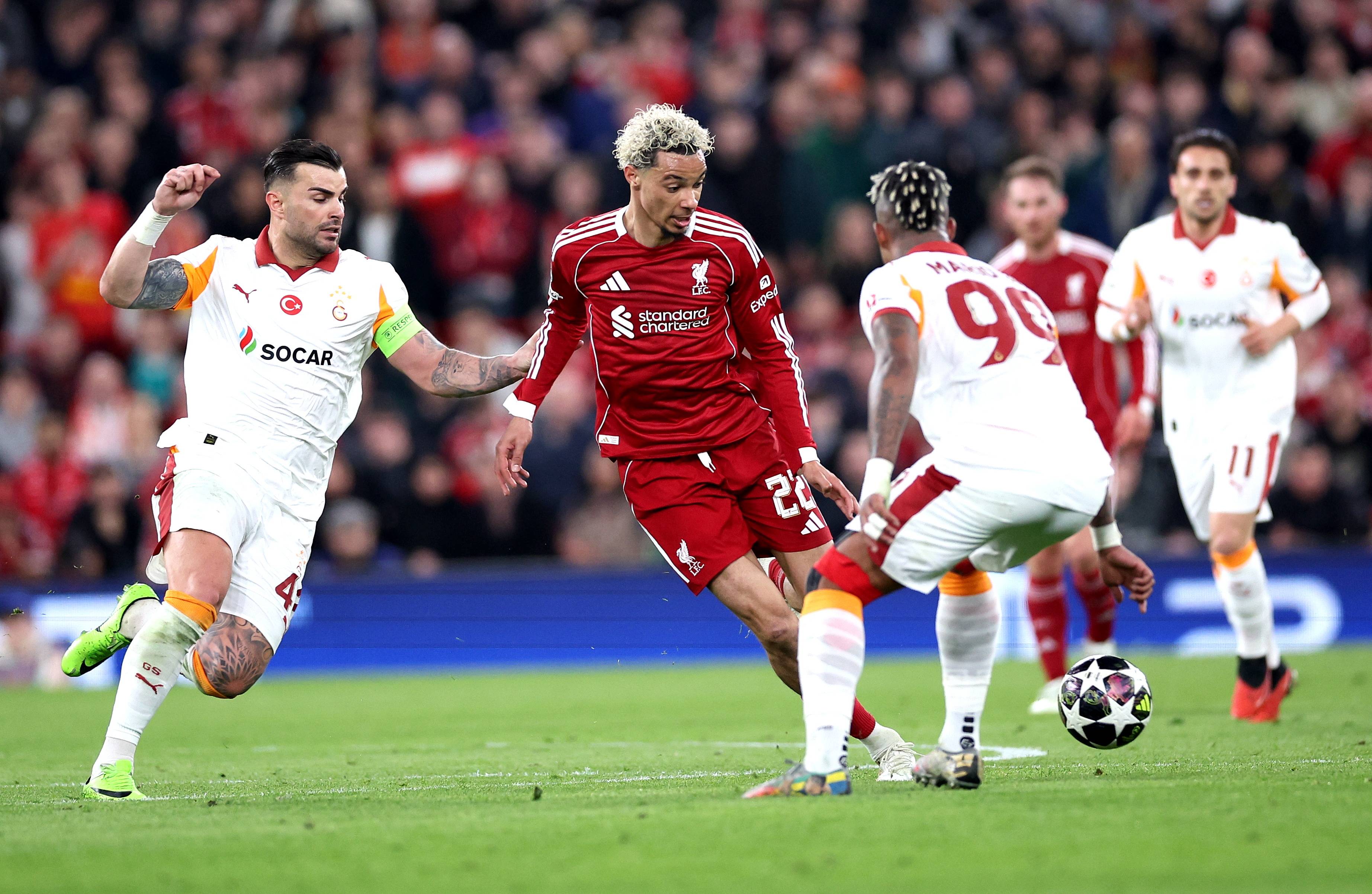 เมื่อวันที่ 18 มีนาคม ในรอบสองของยูฟ่า แชมเปี้ยนส์ลีก รอบรองชนะเลิศ 2025-2026 ที่ลิเวอร์พูล สหราชอาณาจักร พรีเมียร์ลีก ลิเวอร์พูล เอาชนะ ตัส ซูเปอร์ กาลาตาซาราย 4-0 ในบ้าน จึงผ่านเข้ารอบรองชนะเลิศด้วยคะแนนรวม 4-1