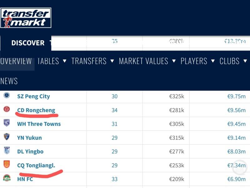 ตัดสินจากข้อมูลของเว็บไซต์โอนผู้เล่นที่มีอำนาจ "ตลาดโอนเยอรมัน": ทีมเฉิงตูหรงเฉิงมีมูลค่า 9.56 ล้านยูโร อันดับที่ 9 ใน Chinese Super League ฉงชิ่ง ตงเหลียงหลง มีมูลค่า 7.34 ล้านยูโร อยู่ในอันดับที่ 13 ในการแข่งขันชิงแชมป์จีน และความแตกต่างระหว่างทั้งสองทีมนั้นเกือบ 2.2 ล้านยูโร