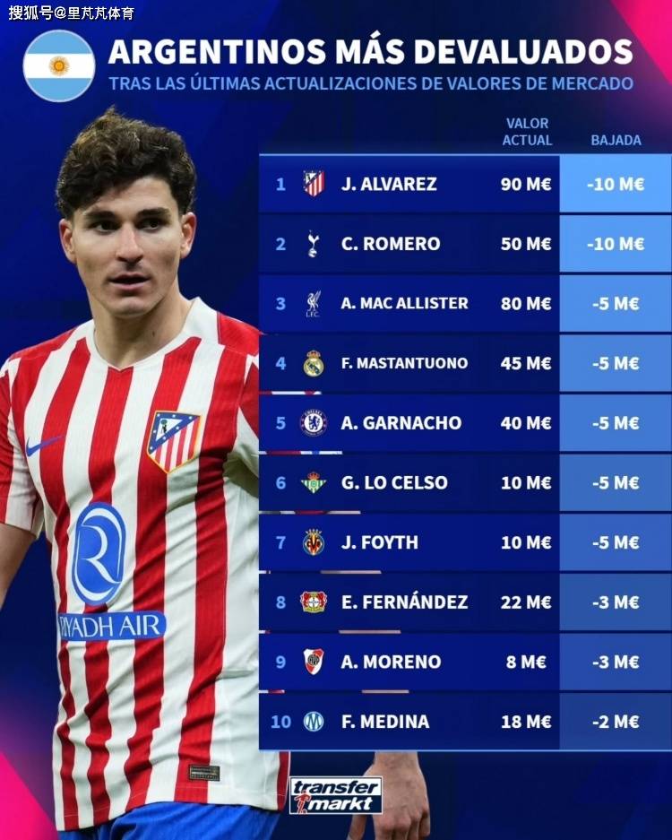 ในหมู่พวกเขา ความเสื่อมโทรมคืออัลวาเรซ หัวหน้าฝ่ายยิงของแอตเลติโก มาดริด และโรเมโร กัปตันทีมท็อตแนม จำนวนการลดลงยังคงค่อนข้างสูงถึง 10 ล้าน ปัจจุบันมูลค่าการโอนเงินส่วนตัวของ Alvarez อยู่ที่ประมาณ 90 ล้านยูโร และโรเมโรคือ 50 ล้าน นี่เป็นการเปรียบเทียบตัวเลขตามวัตถุประสงค์ อัลวาเรซ มีปัญหากับสโมสรที่แอตเลติโก มาดริด ในฤดูกาลนี้ มันไม่มีความสุขเลยจริงๆ พวกเขามาถึงรอบรองชนะเลิศแชมเปี้ยนส์ลีก นี่เป็นโอกาสที่จะปรับสถานะของพวกเขา โรเมโรเกือบต้องตกชั้นที่ท็อตแนม ประกอบกับอาการบาดเจ็บ มันยากจริงๆ
