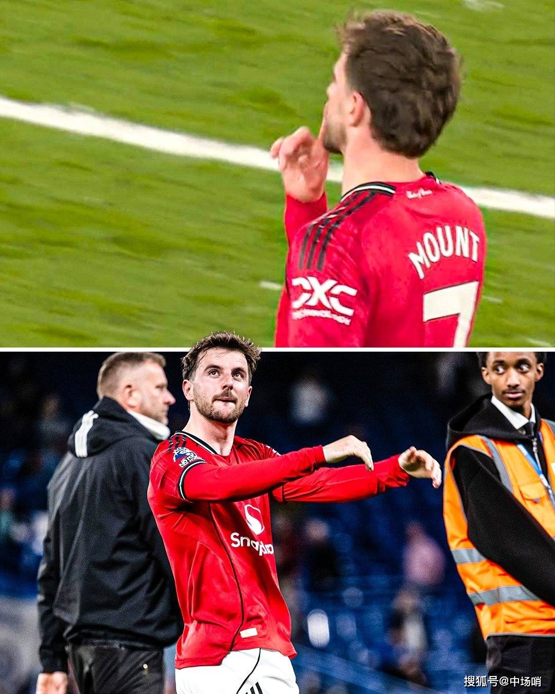 จากนั้น เมื่อแมนเชสเตอร์ ยูไนเต็ด ล็อคชัยชนะและเสียงนกหวีดสุดท้ายกำลังจะระเบิด เมาท์ก็วางนิ้วชี้ขวาไว้ข้างหน้าริมฝีปากของเขาและทำท่า "ชิช" อย่างชัดเจน