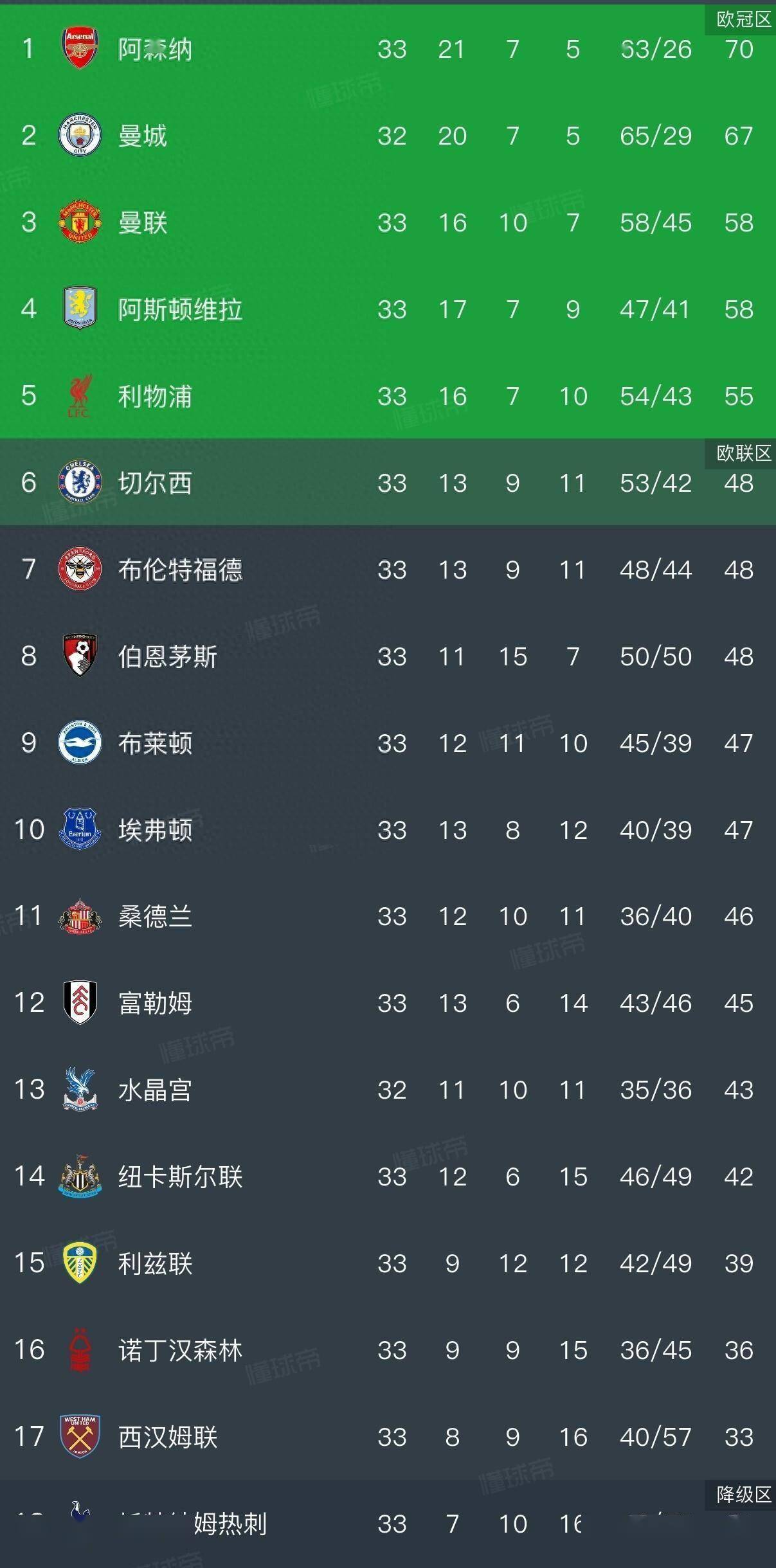 ด้วยวิธีนี้ สองในสามตำแหน่งที่ตกชั้นในพรีเมียร์ลีกในฤดูกาลนี้จึงถูกล็อคโดยพื้นฐานแล้ว โควต้าการตกชั้นครั้งสุดท้ายกลายเป็นที่โหดร้ายและสะดุดตาอย่างยิ่งในปัจจุบันโควต้านี้น่าจะเกิดขึ้นระหว่างสามทีมของท็อตแนม เวสต์แฮม และ น็อตติงแฮม ฟอเรสต์ < /strong>