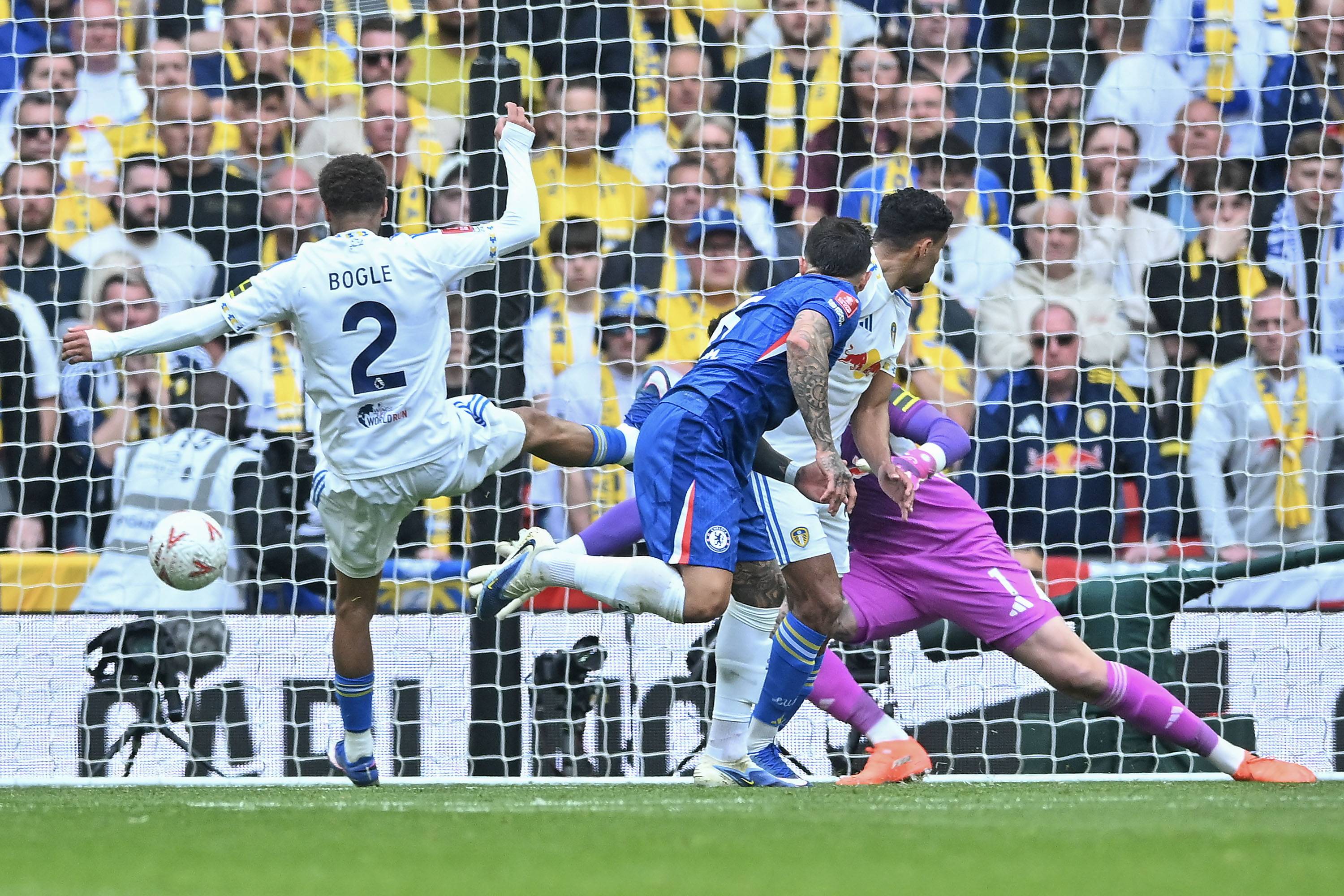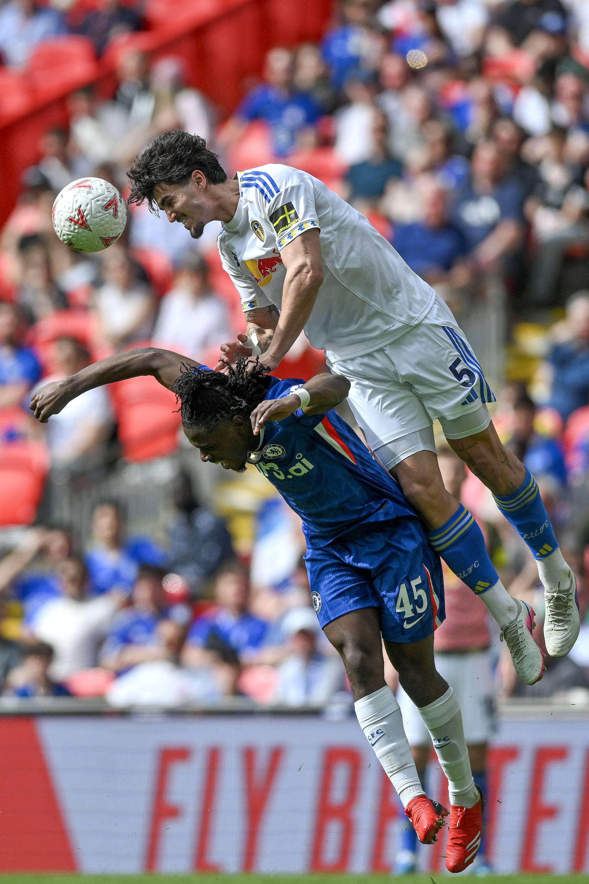 เนโต้ นักเตะเชลซี (ขวา) ในวันที่ 26 เมษายน ต่อสู้กับ โบเกล นักเตะลีดส์ ยูไนเต็ด สำนักข่าวซินหัว/OU XIN