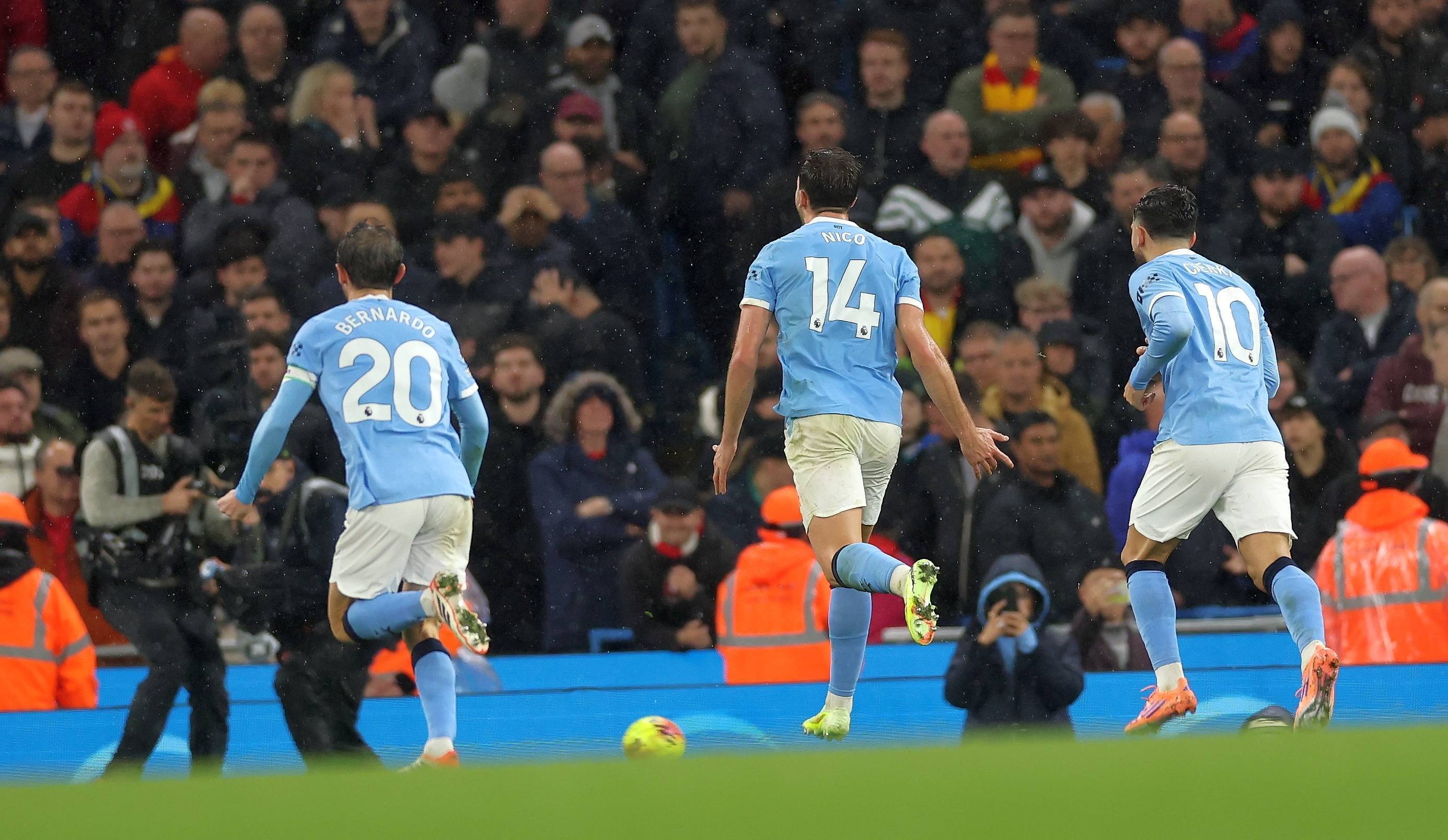 เมื่อวันที่ 9 พฤศจิกายน นิโก้ กอนซาเลซ (ซ้าย) นักเตะแมนเชสเตอร์ ซิตี้ ทำประตูที่สองให้กับทีมของเขา สำนักข่าวซินหัว/EPA
