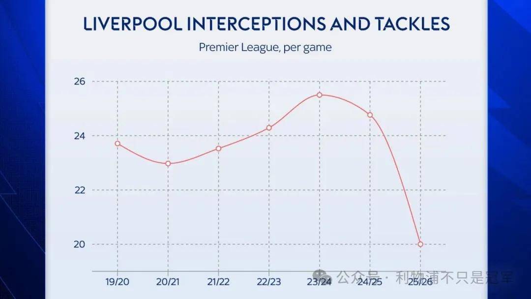 ต่อมา สถิติการสกัดบอลและการเข้าปะทะของลิเวอร์พูลก็ดูจะลดลงอย่างเห็นได้ชัด ในฤดูกาลนี้ จำนวนการสกัดบอลและการเข้าปะทะเฉลี่ยต่อนัดของทีมหงส์แดงลดลงต่ำกว่าค่าเฉลี่ยในช่วงหกฤดูกาลที่ผ่านมาอย่างมาก ในการพบกับแมนเชสเตอร์ ซิตี้ ลิเวอร์พูลสามารถเข้าปะทะได้เพียงแปดครั้ง ขณะที่ซิตี้ทำได้เกือบสองเท่าของพวกเขา คือ 17 ครั้ง