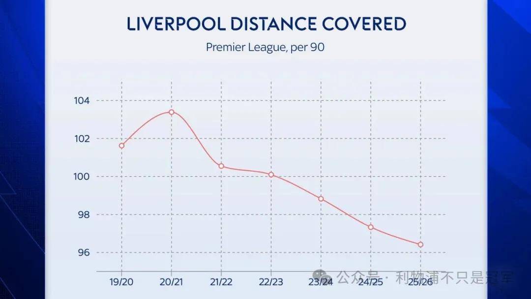 นอกจากนี้ เกี่ยวกับระยะทางรวมที่ครอบคลุม แมนเชสเตอร์ ซิตี้ ครองอันดับหนึ่งในตารางพรีเมียร์ลีกสำหรับระยะทางการวิ่งเฉลี่ยต่อการแข่งขันในฤดูกาลนี้ ในขณะที่ลิเวอร์พูลอยู่ในอันดับที่สามจากท้ายสุดอย่างน่าประหลาดใจ ควรเน้นว่าแนวโน้มนี้ไม่ได้เกิดขึ้นเพียงหลังจากแต่งตั้งสล็อท ตั้งแต่ฤดูกาล 2021-22 ระยะทางการวิ่งของลิเวอร์พูลลดลงทุกปี ซึ่งเป็นรูปแบบที่ยังคงอยู่แม้ในช่วงสามฤดูกาลสุดท้ายของคล็อปป์ภายใต้การคุมทีมของสล็อท การลดระยะทางการวิ่งนี้เป็นการเปลี่ยนแปลงเชิงกลยุทธ์ที่ตั้งใจไว้ โดยเขาให้ความสำคัญกับการครองบอลมากกว่าสไตล์การกดดันสูงของคล็อปป์ การปรับเปลี่ยนนี้ช่วยประหยัดพลังงานและลดการบาดเจ็บในฤดูกาลที่แล้ว อย่างไรก็ตาม เมื่อผลงานของทีมตกต่ำลงในฤดูกาลนี้ ระยะทางการวิ่งที่ลดลงจึงกลายเป็นจุดที่ถูกวิจารณ์อย่างหลีกเลี่ยงไม่ได้