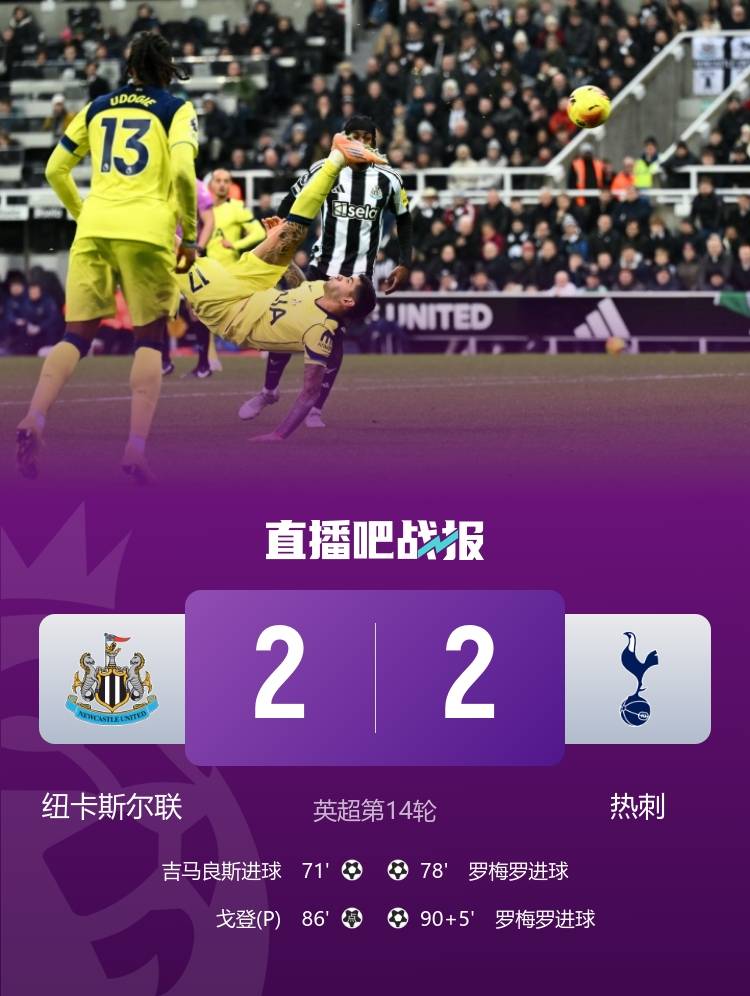 เสมอแบบสุดมันส์! สเปอร์สเสมอกับนิวคาสเซิล 2-2 ยืดสถิติไร้ชัยเป็น 5 นัด โรเมโรทำสองประตู รวมถึงประตูตีเสมอสุดสวย; ซานเชซก็ยิงได้เช่นกัน _วอลทซ์ แมด_ _เดนโซ_ _กอร์ดอน_