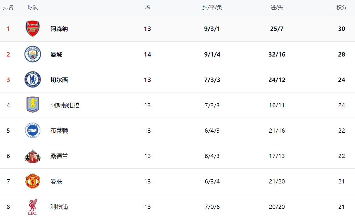 ในตารางลีกล่าสุด อาร์เซนอลยังคงครองตำแหน่งจ่าฝูงอย่างมั่นคงด้วย 30 คะแนน แมนเชสเตอร์ ซิตี้คว้าชัยชนะทำให้มีคะแนนรวมเป็น 28 คะแนน อยู่ในอันดับสอง ตามหลังเดอะกันเนอร์สเพียงสองคะแนนเท่านั้น เมื่อฤดูกาลดำเนินต่อไป การแข่งขันชิงแชมป์กำลังทวีความเข้มข้นขึ้นเรื่อยๆเชลซีและแอสตัน วิลล่า มีคะแนนเท่ากันที่ 24 คะแนน ครองอันดับสามและสี่ตามลำดับ ไบรท์ตันและซันเดอร์แลนด์อยู่ในอันดับห้าและหกด้วยคะแนน 22 คะแนน แมนเชสเตอร์ ยูไนเต็ด อยู่ในอันดับเจ็ดด้วยคะแนน 21 คะแนน ขณะที่ลิเวอร์พูลก็มีคะแนน 21 คะแนนเช่นกัน อยู่ในอันดับแปด ท็อตแน่ม ฮ็อตสเปอร์ ยังคงเป็นทีมที่น่าผิดหวังที่สุดในบรรดา 'บิ๊กซิกส์' อยู่ในอันดับสิบเอ็ดด้วยคะแนนเพียง 19 คะแนน