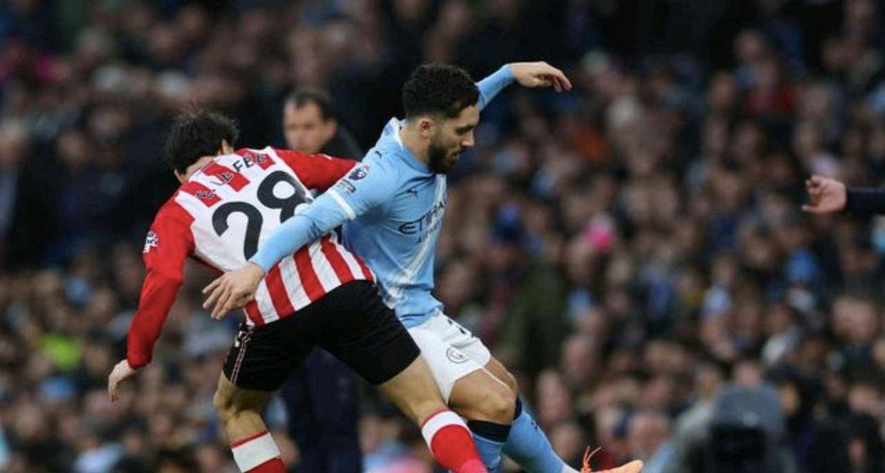 เผชิญหน้ากับซันเดอร์แลนด์ที่เล่นอย่างดุดัน แมนเชสเตอร์ ซิตี้ แสดงให้เห็นถึงการควบคุมเกมอย่างยอดเยี่ยมตั้งแต่เริ่มต้น ผ่านการจ่ายบอลและการเคลื่อนไหวที่ชาญฉลาด พวกเขาควบคุมจังหวะของเกมได้อย่างมั่นคง แม้แนวรับของซันเดอร์แลนด์จะจัดระเบียบกันอย่างแน่นหนา พยายามปิดกั้นพื้นที่โจมตีของซิตี้ด้วยการประกบตัวที่รัดกุม แต่แรงกดดันอย่างต่อเนื่องของทีม "สิงห์บลูส์" ทำให้การพังประตูแรกเป็นเพียงเรื่องของเวลาเท่านั้นการหยุดชะงักถูกทำลายลงอย่างน่าทึ่งในนาทีที่ 31รูเบน ดิอาส กองหลังของทีมซิตี้ รับบอลใกล้เส้นกลางสนาม ก่อนจะใช้เวลาสักครู่เพื่อตั้งสติ แล้วซัดลูกยิงไกลสุดแรงเกิด บอลพุ่งทะยานราวกับลูกกระสุนปืนใหญ่ หมุนควงโค้งอย่างน่าทึ่งเข้าประตูไปอย่างสวยงามที่มุมบนสุด ทำให้ผู้รักษาประตูฝ่ายตรงข้ามหมดสิทธิ์รับอย่างสิ้นเชิง ประตูสุดมหัศจรรย์นี้ไม่เพียงแต่ทำให้ทีมซิตี้ขึ้นนำเท่านั้น แต่ยังจุดประกายความคลั่งไคล้ให้กับแฟนบอลเจ้าบ้านอีกด้วย