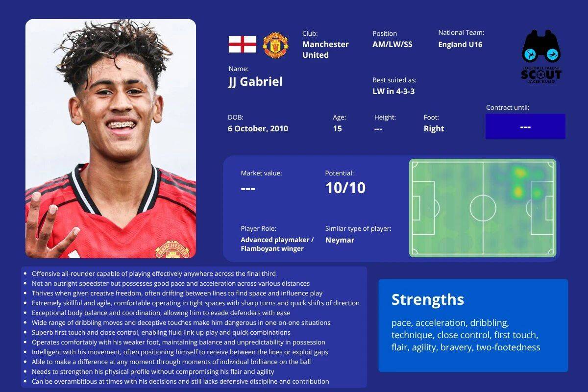 กาเบรียลจะไม่สามารถเข้าร่วมการแข่งขันพรีเมียร์ลีกในฤดูกาลนี้ได้อย่างแน่นอน เนื่องจากกฎระเบียบของลีกกำหนดว่าผู้เล่นต้องมีอายุครบ 15 ปีภายในวันที่ 31 สิงหาคมของฤดูกาลนั้นจึงจะมีสิทธิ์ลงทะเบียนได้ อย่างไรก็ตาม ดาวรุ่งของแมนเชสเตอร์ ยูไนเต็ดรายนี้ยังมีโอกาสทำลายสถิติการลงสนามเปิดตัวที่อายุน้อยที่สุดของสโมสรในฤดูกาลหน้า