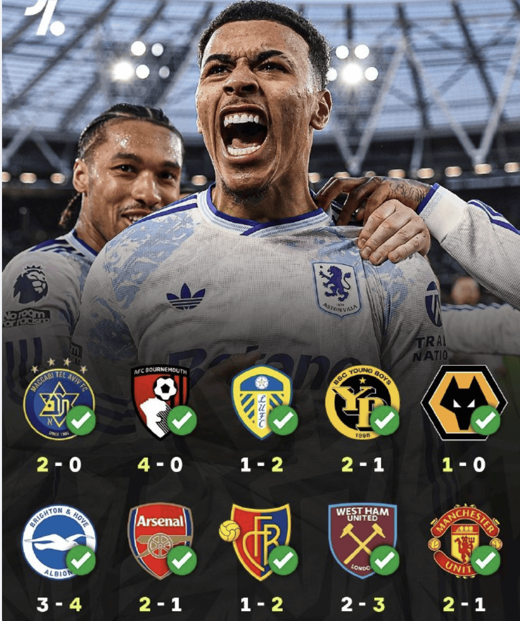 แอสตัน วิลล่า ได้กลายเป็นทีมที่น่าเกรงขามที่สุดในพรีเมียร์ลีกแล้ว โดยพิสูจน์ให้เห็นว่าพวกเขาหยุดยั้งไม่ได้เลย เมื่อเจอกับแมนเชสเตอร์ ยูไนเต็ด ที่ต้องการสามแต้มอย่างสิ้นหวัง ทีมของอูไน เอเมรี แสดงให้เห็นถึงประสิทธิภาพที่น่าทึ่ง ในนาทีที่ 45 โรเจอร์สทำประตูให้ทีมขึ้นนำด้วยการยิงโค้งที่ยอดเยี่ยม