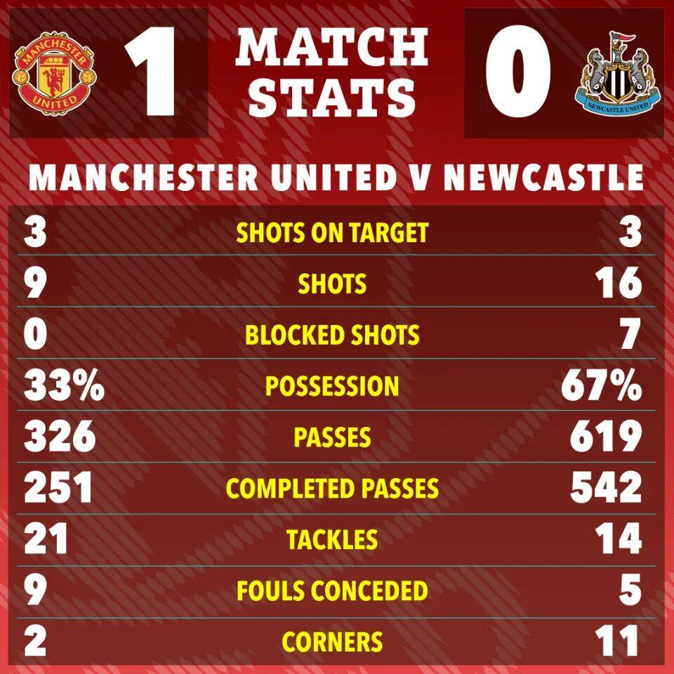 ในทางตรงกันข้าม แม้ว่าการเปลี่ยนตัวของอโมลินจะถูกวิจารณ์เช่นกัน แต่ผู้เล่นแมนเชสเตอร์ ยูไนเต็ด กลับแสดงให้เห็นถึงจิตวิญญาณการต่อสู้ที่กล้าหาญ แม้แต่ไทเรลล์ มาลาเซีย หนึ่งใน 'ห้าหนู' ก็ยังลงสนาม ทีมสามารถรักษาคลีนชีตได้ในที่สุด น่าสังเกตว่าคลีนชีตทั้งสองของแมนเชสเตอร์ ยูไนเต็ดในฤดูกาลนี้เกิดขึ้นกับทีมจากภาคตะวันออกเฉียงเหนือ อีกทีมหนึ่งคือซันเดอร์แลนด์ ซึ่งเป็นคู่ปรับตลอดกาลของนิวคาสเซิล