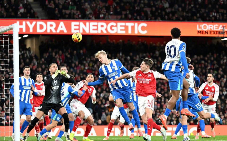 อาร์เซนอลเผชิญกับแรงกดดันอย่างมากในการพบกับแมนเชสเตอร์ ซิตี้ แต่โชคดีที่โอเดการ์ดเปิดสกอร์แรกได้ตั้งแต่ต้นเกมด้วยลูกยิงเท้าซ้ายอันเป็นเอกลักษณ์ของเขา จากนั้นไรซ์ก็บวกประตูที่สองให้ทีมด้วยการยิงไกลที่เปลี่ยนเป็นประตูตัวเอง ส่งให้ปืนใหญ่ขึ้นนำสองประตู ไบรท์ตันไม่ยอมแพ้ง่ายๆ โกเมซยิงตีไข่แตกจากระยะประชิด ก่อนจะเปิดฉากบุกอย่างหนักจนเกือบทำให้เกมกลายเป็นการต่อสู้ที่ดุเดือดในช่วงเวลาสำคัญ ผู้รักษาประตูรายาได้แสดงผลงานที่น่าทึ่งจนทำให้ผู้ชมตกตะลึง ในนาทีที่ 77 เขาได้กระโดดเซฟลูกยิงไกลอันทรงพลังของไมตัน ทำให้อาร์เซนอลสามารถผ่านพ้นช่วงเวลาที่ยากลำบากไปได้ และรักษาชัยชนะอันเฉียดฉิวไว้ได้ 2-1