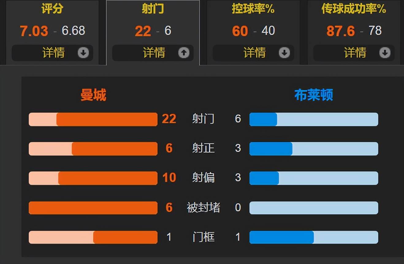 ตลอดการแข่งขันแมนเชสเตอร์ ซิตี้ครองบอลได้ 60% ยิงทั้งหมด 22 ครั้งเข้ากรอบ 6 ครั้ง ขณะที่ไบรท์ตันยิงได้ 6 ครั้งเข้ากรอบ 3 ครั้งการเสียคะแนนของซิตี้เกิดจากผลงานที่ไม่สม่ำเสมอของฮาแลนด์และการขาดผู้เล่นที่ทำประตูได้เป็นอันดับสองที่น่าเชื่อถือ การเสมอเป็นนัดที่สามติดต่อกันนี้อาจทำให้แมนเชสเตอร์ ซิตี้หลุดจากเส้นทางลุ้นแชมป์ได้