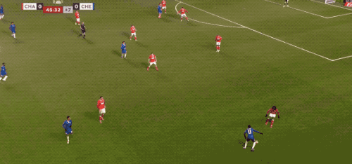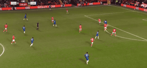 ในนาทีที่ 34 เชลซีได้สร้างจังหวะการต่อบอลแบบหนึ่งสัมผัสต่อเนื่องในแดนหน้า ก่อนจะจบด้วยการยิงไกลสุดแรงจากอากัมปง ซึ่งผู้รักษาประตูต้องออกแรงปัดออกไปอย่างยอดเยี่ยม