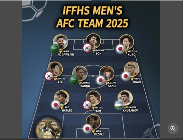 สหพันธ์ประวัติศาสตร์และสถิติฟุตบอลนานาชาติ (IFFHS) ได้ประกาศทีมยอดเยี่ยมแห่งเอเชียประจำปี 2025 บนเว็บไซต์อย่างเป็นทางการเมื่อวันที่ 27 มกราคม ตามเวลาท้องถิ่น ต่อมาในวันที่ 30 มกราคม สื่อเกาหลีใต้ OSEN ได้เน้นย้ำถึงความแตกต่างในจำนวนผู้เล่นจากญี่ปุ่นและเกาหลีใต้ที่ได้รับการคัดเลือกเข้าสู่ทีมอันทรงเกียรตินี้