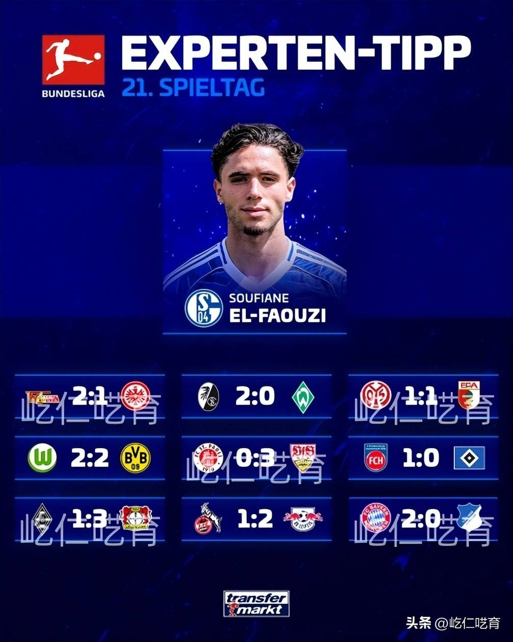 ทรานสเฟอร์มาร์ค บุนเดสลีกา คาดการณ์: โวล์ฟสบวร์ก 2-2 ดอร์ทมุนด์ โบรุสเซีย มึนเชนกลัดบัค 1-3 ไบเออร์ เลเวอร์คูเซน บาเยิร์น มิวนิก 2-0 ฮอฟเฟนไฮม์ ฮัมบูร์ก 0-1 ไอน์ทรัค แฟรงค์เฟิร์ต