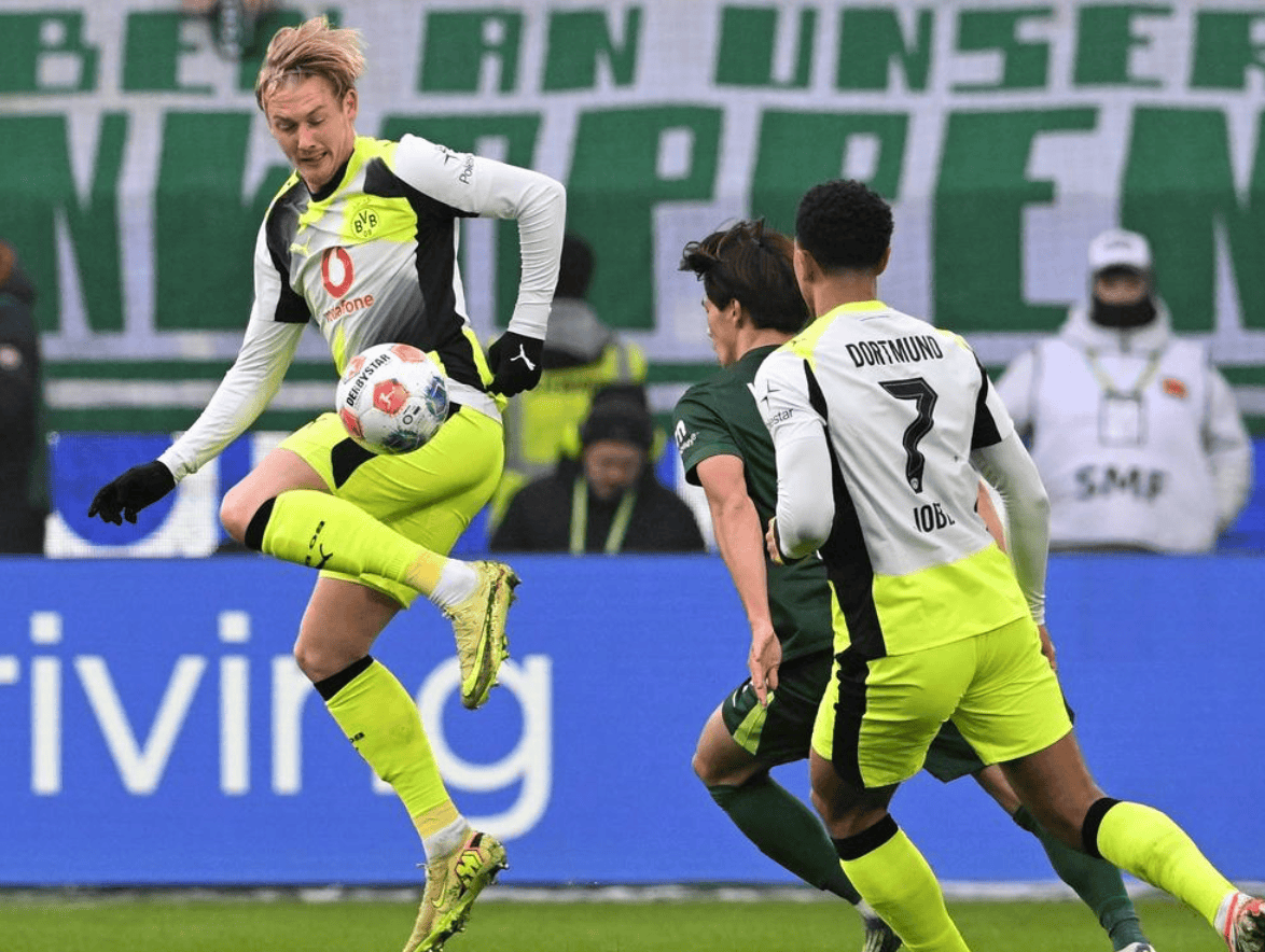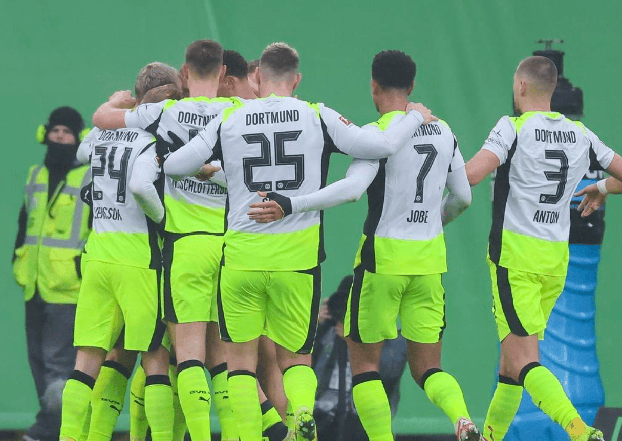 ประตูชัยในนาทีที่ 87! ผลการแข่งขัน 2-1 ทำให้การแข่งขันชิงแชมป์พลิกผัน โดยสองทีมนำมีคะแนนห่างกันเพียงสามแต้มเท่านั้น ความหวังของบาเยิร์นยังคงแขวนอยู่บนเส้นด้าย ดอร์ทมุนด์ โวล์ฟสบวร์ก กิราซี