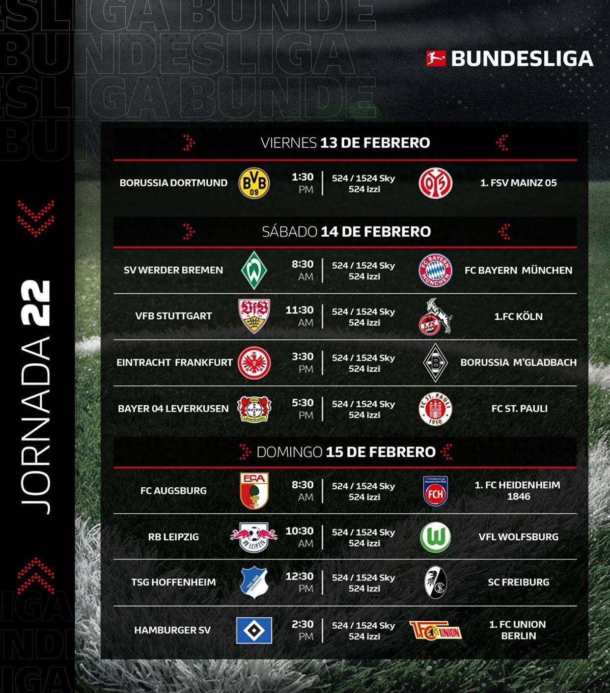 นอกเหนือจากสองนัดนี้แล้ว รูดี้ยังทำนายผลการแข่งขันสำหรับอีกเจ็ดนัดในบุนเดสลีกาในรอบนี้ด้วย ไบเออร์ เลเวอร์คูเซ่น 2-0 เซนต์ เพาลี, ไอน์ทรัค แฟร้งค์เฟิร์ต 2-1 โบรุสเซีย มึนเช่นกลัดบัค, ทีเอสจี ฮอฟเฟ่นไฮม์ 3-1 เอสซี ไฟร์บวร์ก, ฮัมบูร์ก เอสวี 1-1 ยูเนียน เบอร์ลิน, วีเอฟแอล สตุ๊ตการ์ต 2-1 1. เอฟซี โคโลญจน์, เอฟซี อูเออร์สบวร์ก 2-1 1. เอฟซี ไฮเดนไฮม์, อาร์บี ไลป์ซิก 2-0 วีเอฟแอล โวล์ฟสบวร์ก.
