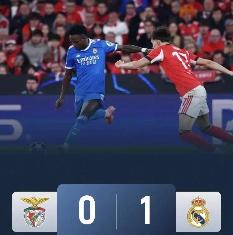 เรอัล มาดริด เดินทางไปพบกับเบนฟิก้าในการแข่งขันที่สูสีอย่างยิ่ง ตั้งแต่เริ่มต้น ทั้งสองทีมแสดงให้เห็นถึงความมุ่งมั่นในการป้องกันอย่างแข็งแกร่ง โดยไม่มีฝ่ายใดสามารถทำประตูได้ในครึ่งแรก เอ็มบัปเป้และวินิซิอุสได้สร้างโอกาสโจมตีหลายครั้ง แต่ถูกผู้รักษาประตูของเบนฟิก้าขัดขวางไว้ได้ครึ่งหลังนำมาซึ่งการเปลี่ยนแปลงของโมเมนตัม เอ็มบัปเป้ส่งบอลที่อันตรายให้วินิซิอุสทำแอสซิสต์ วินิซิอุสแสดงเทคนิคที่แม่นยำ ตัดเข้าด้านในก่อนจะยิงโค้งอย่างสวยงามเข้าประตูไป ประตูสำคัญนี้ตัดสินผลการแข่งขันในที่สุด ดราม่าเกิดขึ้นในช่วงท้ายเกมเมื่อผู้จัดการทีมเบนฟิก้าไม่พอใจกับการตัดสินของกรรมการและถูกใบแดง ทำให้สถานการณ์ยิ่งเข้มข้นขึ้น เรอัล มาดริดเอาชนะไปได้ 1-0 คว้าตำแหน่งที่ได้เปรียบสำหรับการผ่านเข้ารอบต่อไป