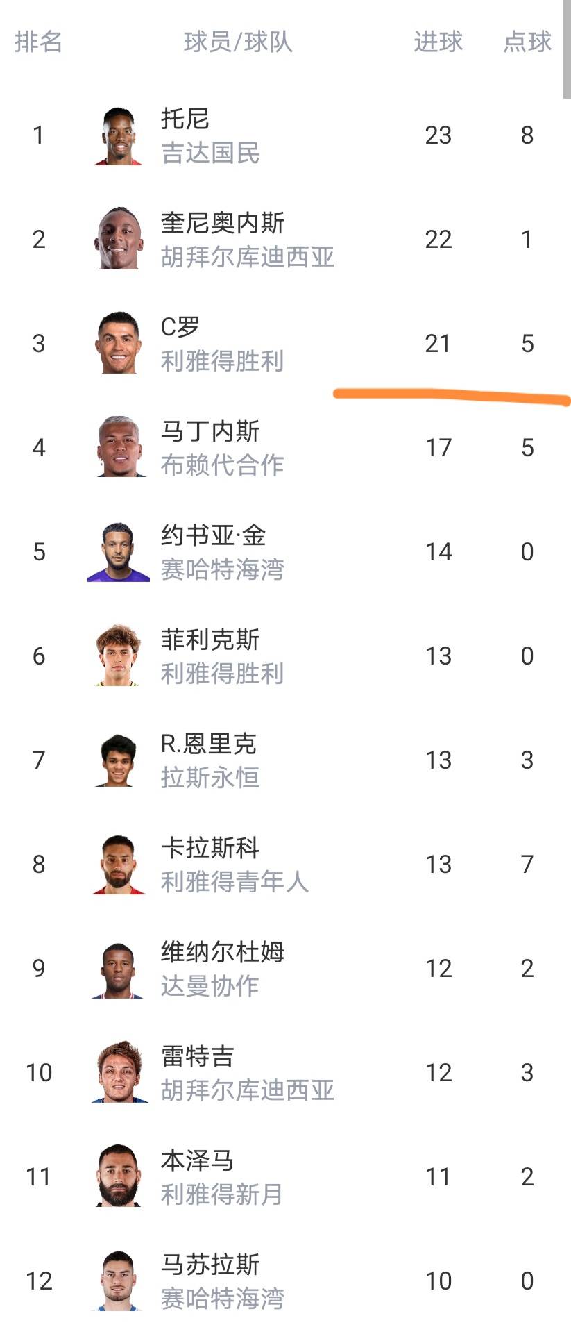 คริสเตียโน่ โรนัลโด้ ทำประตูไปแล้ว 21 ประตูในตารางทำประตู ขณะนี้ตามหลังผู้นำเพียง 2 ประตูเท่านั้น โทนี