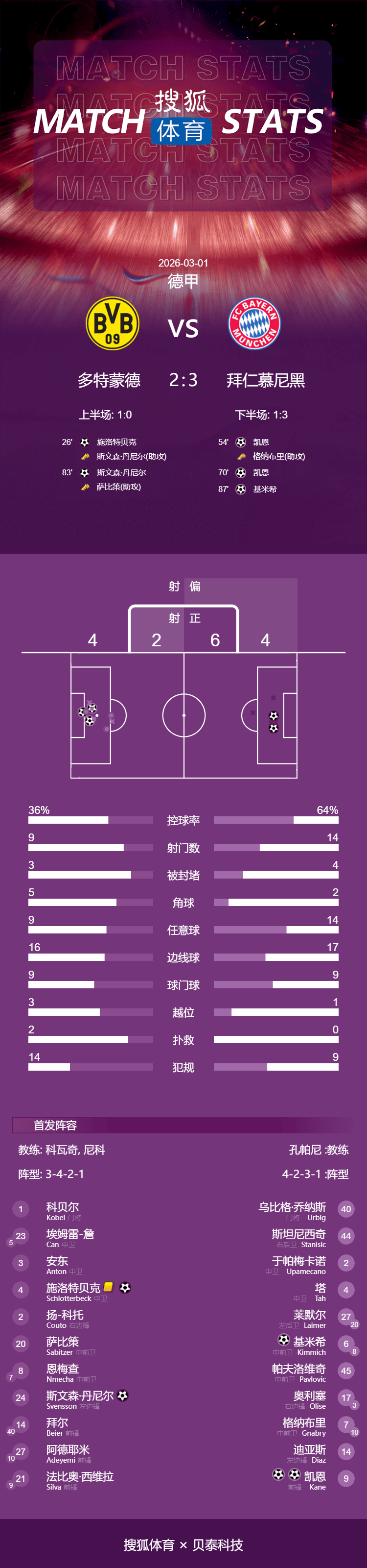 เวลา 01:30 น. ตามเวลาปักกิ่ง วันที่ 1 มีนาคม โบรุสเซีย ดอร์ทมุนด์ เปิดบ้านต้อนรับการมาเยือนของจ่าฝูง บาเยิร์น มิวนิค ที่สนามซิกนัล อิดูนา พาร์ค ในรอบที่ 24 ของฤดูกาลบุนเดสลีกา 2025/26 ก่อนเริ่มการแข่งขัน ดอร์ทมุนด์ อยู่ในอันดับที่สองของตาราง ขณะที่บาเยิร์นครองตำแหน่งจ่าฝูง ดอร์ทมุนด์ขึ้นนำในครึ่งแรกจากการโหม่งของชล็อตเตอร์เบ็ค และป้องกันการทำประตูของบาเยิร์นได้หลายครั้งในครึ่งหลัง บาเยิร์นขึ้นนำจากการทำสองประตูของเคน แต่ดอร์ทมุนด์ตีเสมอได้จากดาเนียล สเวนส์สัน ในช่วงท้ายเกม คิมมิชยิงประตูชัยอย่างสวยงาม สุดท้ายโบรุสเซีย ดอร์ทมุนด์พ่ายแพ้ให้กับบาเยิร์น มิวนิค 2-3 โดยทีมเยือนคว้าชัยชนะในการพบกันของจ่าฝูงครั้งนี้