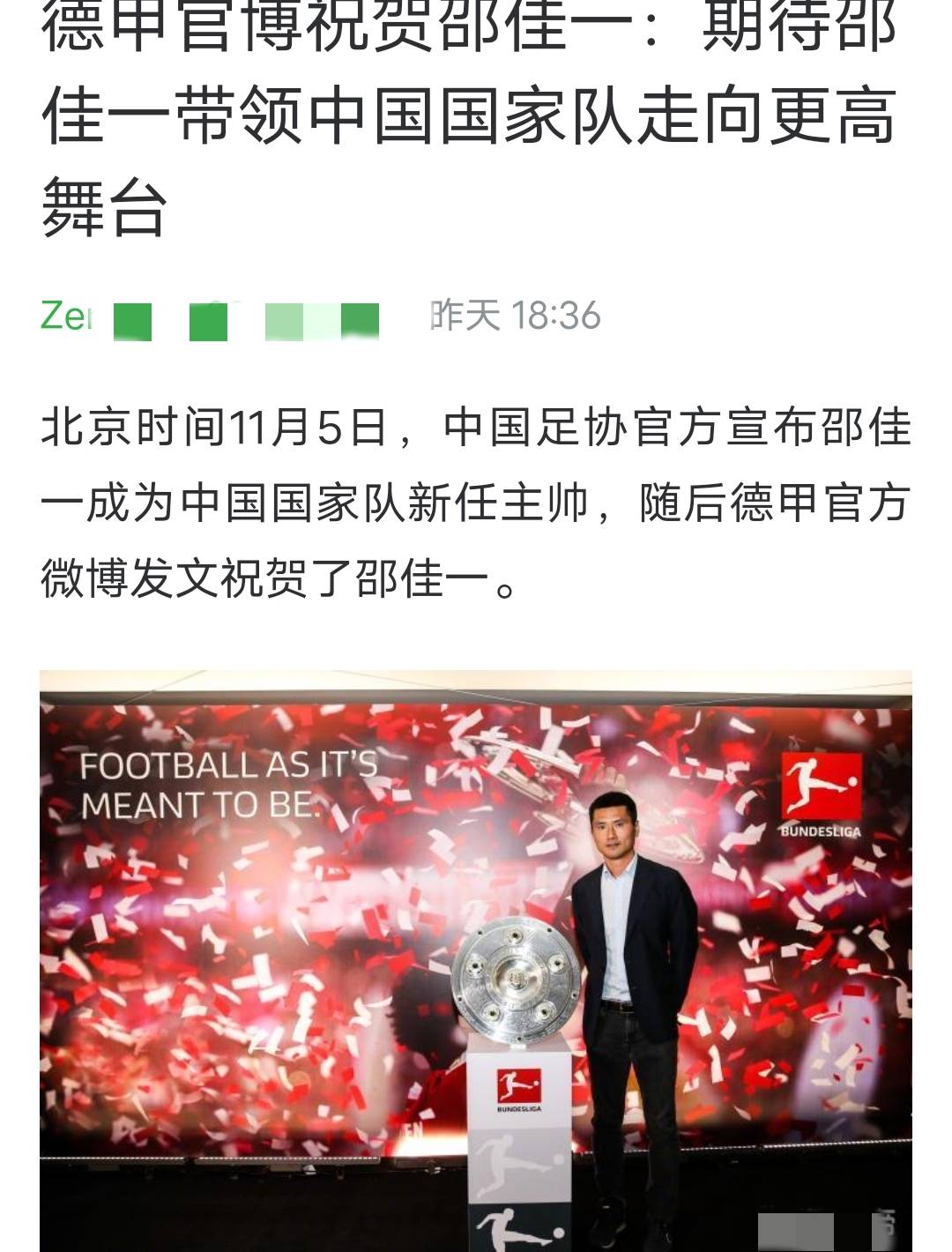 ภายหลังการประกาศแต่งตั้งของเซียว เจียยี เป็นหัวหน้าผู้ฝึกสอนทีมชาติจีน ทั้งบุนเดสลีกาและสมาคมฟุตบอลเยอรมันได้ออกแถลงการณ์แสดงความยินดี สมาคมฟุตบอลเยอรมัน (DFB) ได้ระบุในแถลงการณ์ว่า เซียว เจียยี เคยเล่นให้กับสโมสรในบุนเดสลีกาอย่าง 1860 มิวนิก และ ค็อตบุส รวมถึงทีมในลีกสองอย่าง ดุยส์บวร์ก ตลอดระยะเวลา 9 ปีในอาชีพค้าแข้งในเยอรมนี ผลงานอันโดดเด่นของเขาทำให้เขาได้รับการยกย่องให้เข้าสู่หอเกียรติยศฟุตบอลเยอรมันDFB มองว่าการแต่งตั้ง Shao Jiayi เป็นหัวหน้าผู้ฝึกสอนทีมชาติจีนเป็นเกียรติแก่ฟุตบอลเยอรมัน พวกเขายืนยันความพร้อมที่จะให้การสนับสนุนทุกอย่างที่จำเป็นหากต้องการ โดยช่วยเหลือเขาในการนำทีมจีนไปสู่ความสำเร็จที่ยิ่งใหญ่ขึ้น และขออวยพรให้เขาประสบความสำเร็จในตำแหน่งนี้