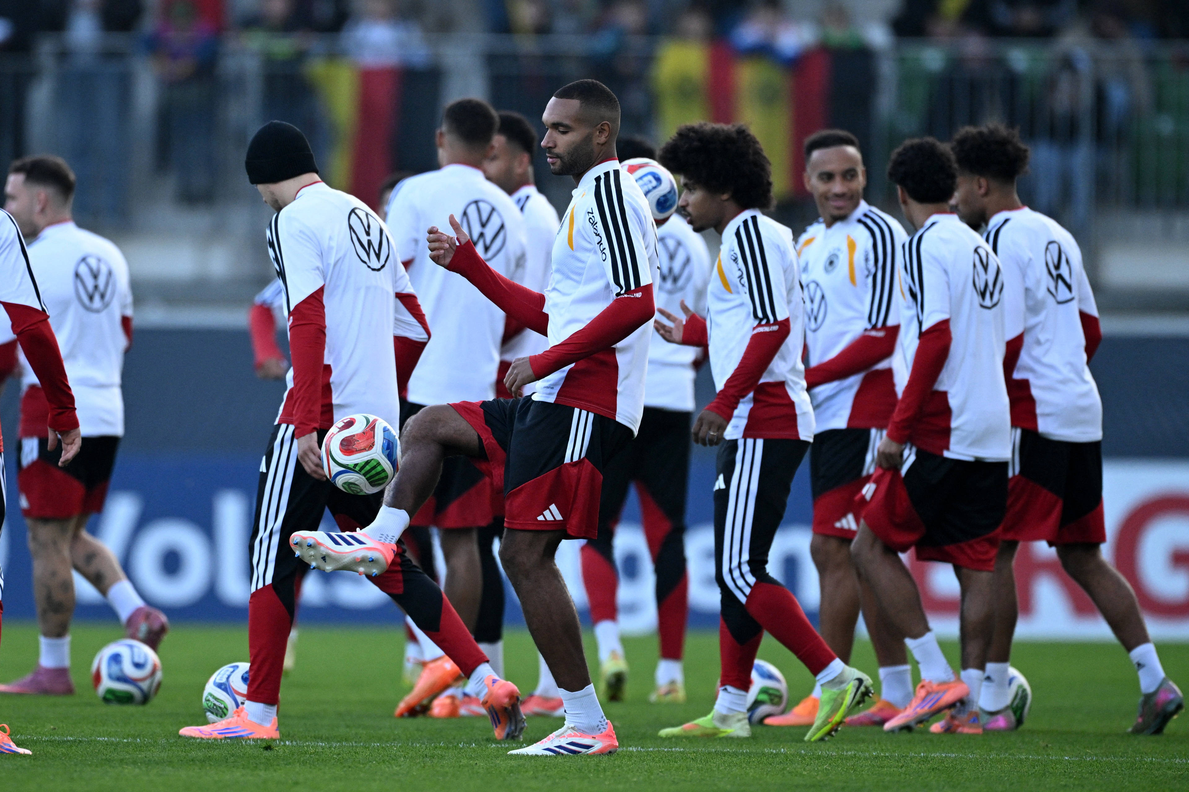 เมื่อวันที่ 10 พฤศจิกายน นักเตะทีมชาติเยอรมนี ทาห์ (กลาง) ระหว่างการฝึกซ้อม. สำนักข่าวซินหัว/รอยเตอร์