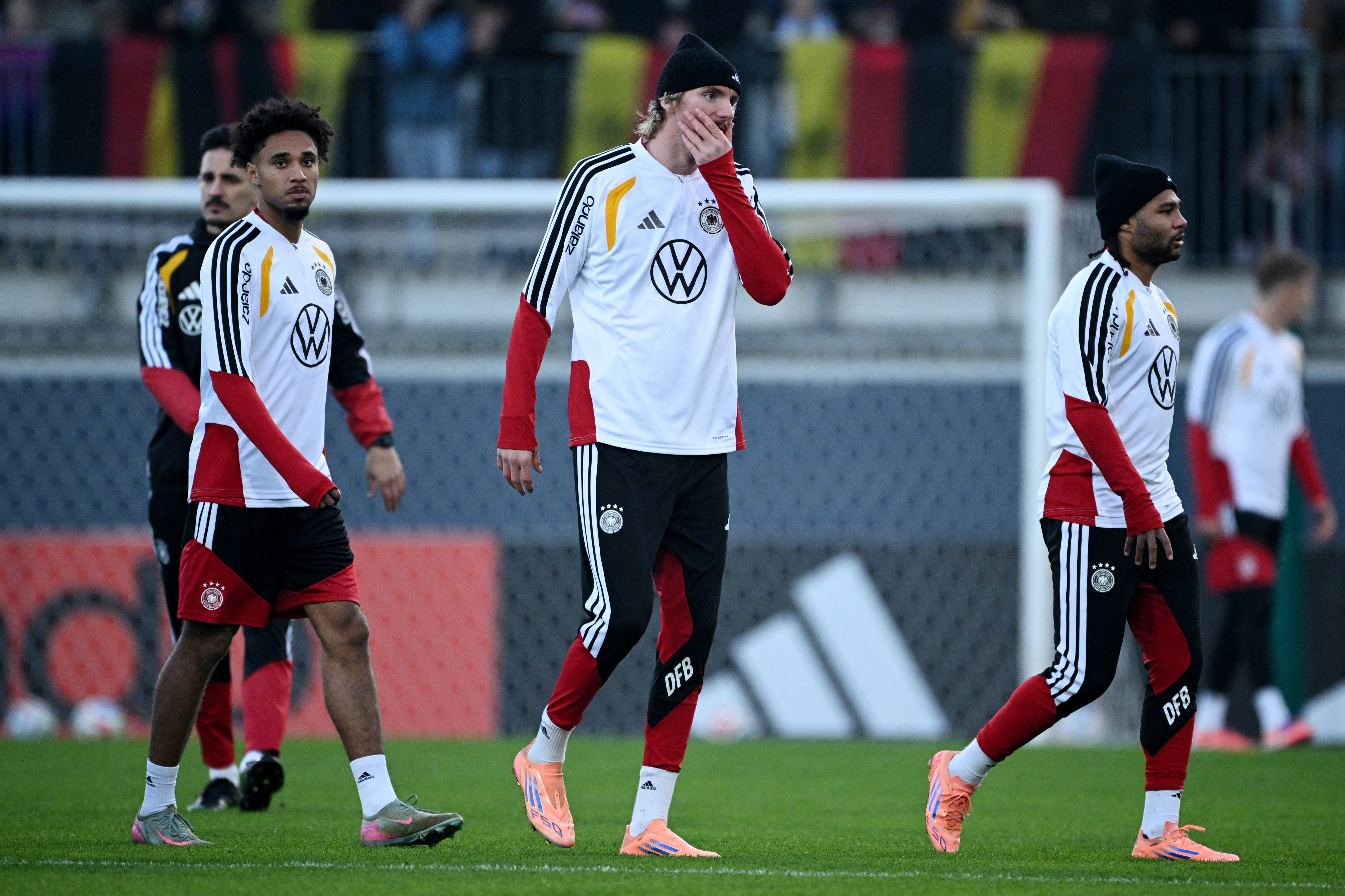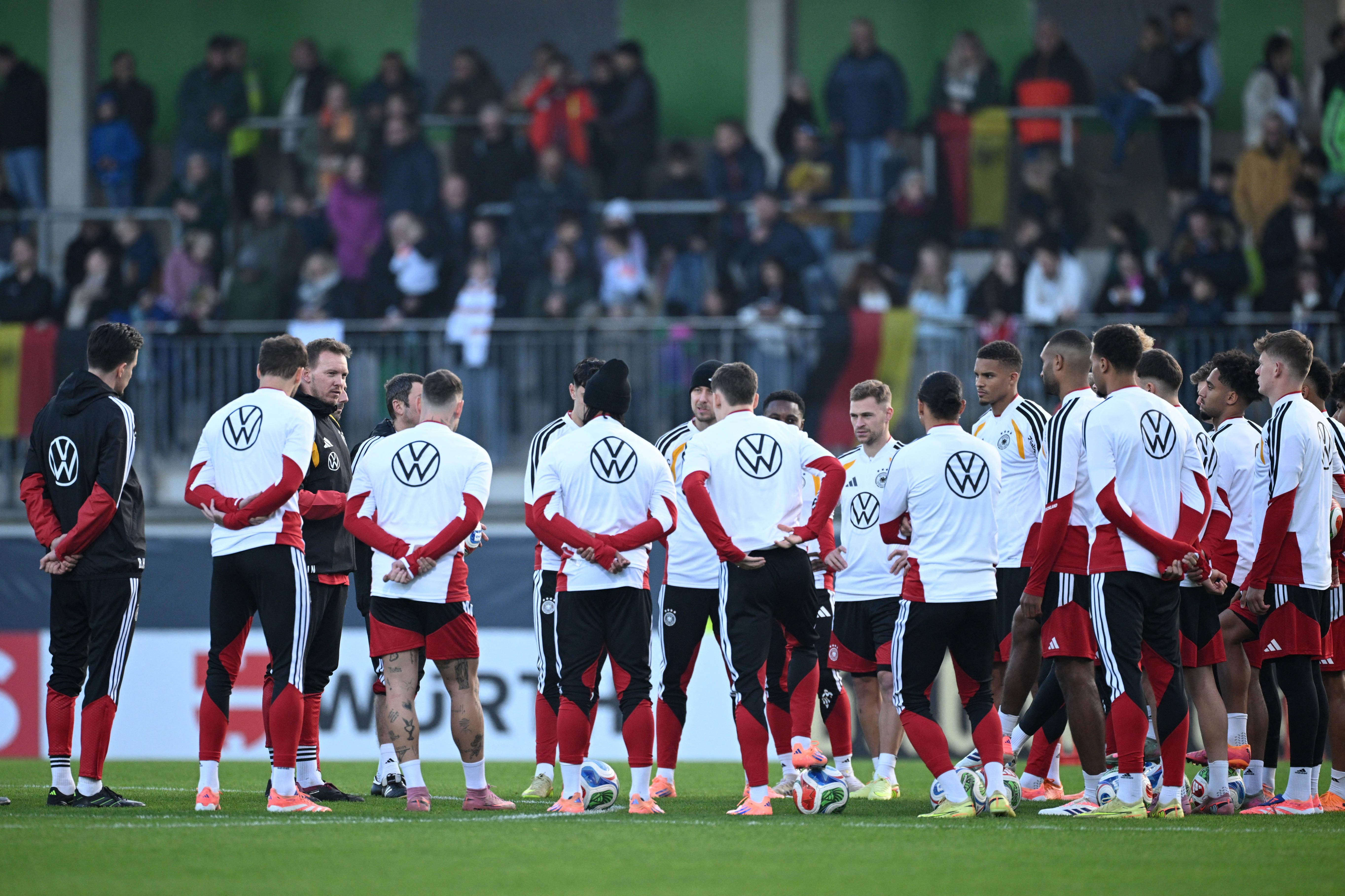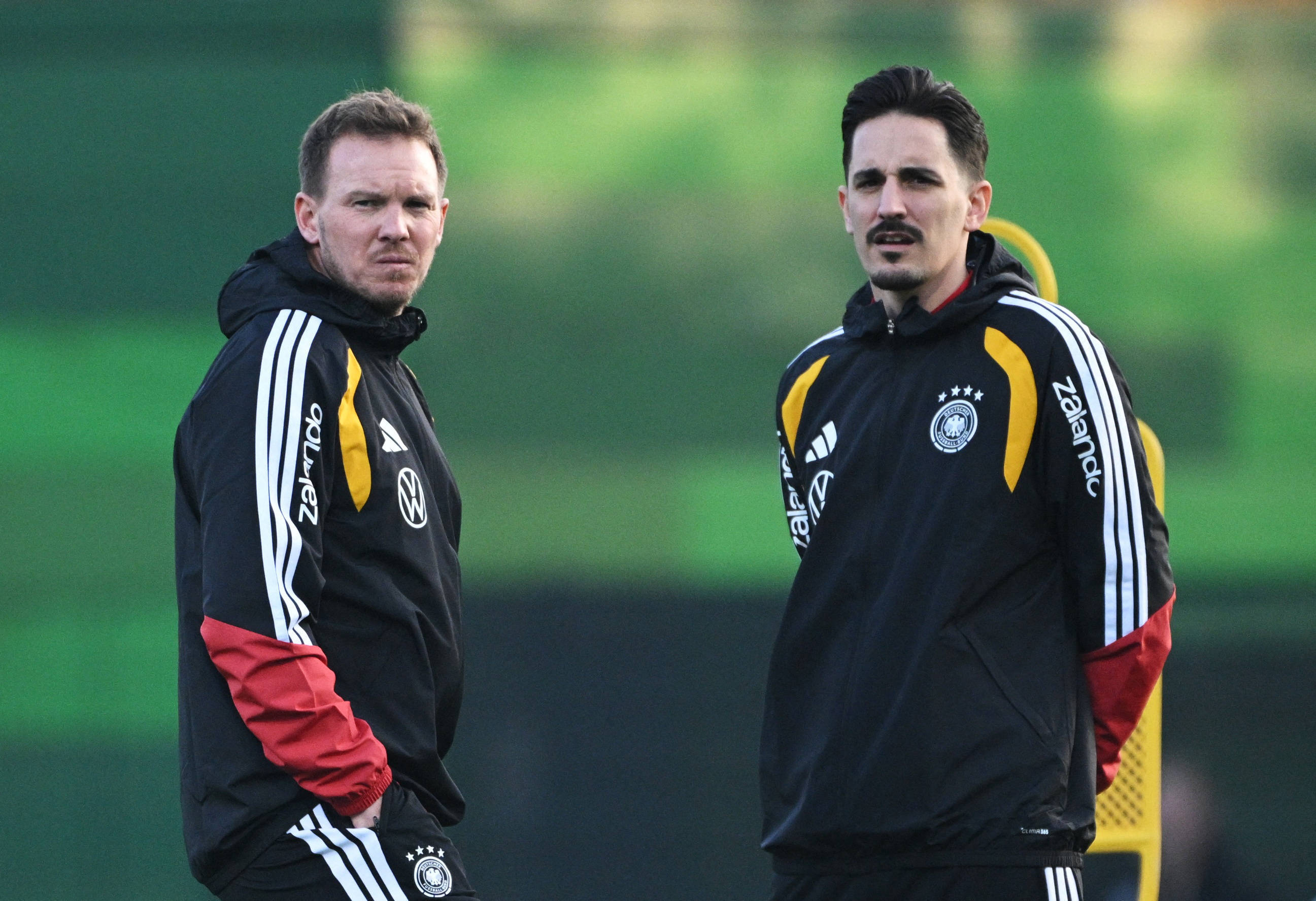 เมื่อวันที่ 10 พฤศจิกายน โค้ชทีมชาติเยอรมนี Julian Nagelsmann (ซ้าย) ระหว่างการฝึกซ้อม. Xinhua/Reuters