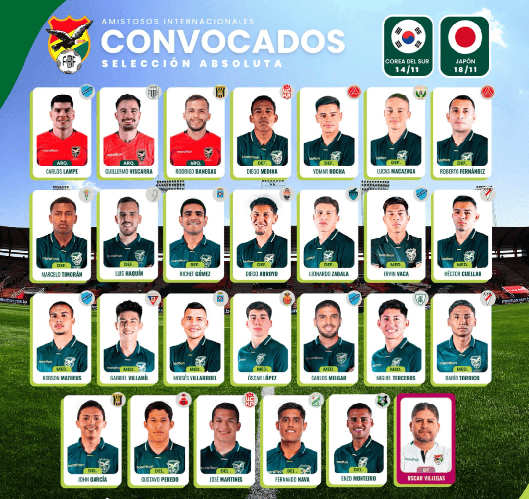 โบลิเวียคว้าอันดับที่เจ็ดในกลุ่มคัดเลือกโซนอเมริกาใต้ หลังจากเอาชนะบราซิล 1-0 ในบ้านในเกมคัดเลือกฟุตบอลโลกนัดสุดท้ายของเดือนกันยายน เวเนซุเอลาซึ่งเคยมีคะแนนนำอยู่หนึ่งแต้ม พ่ายแพ้อย่างหนักในบ้านต่อโคลอมเบีย ทำให้โบลิเวียได้เข้ารอบเพลย์ออฟอย่างน่าเหลือเชื่อ ขณะนี้พวกเขารอคอยคู่แข่งจากทวีปอื่นในรอบเพลย์ออฟ แม้ว่าจะไม่น่าจะต้องเผชิญหน้ากับทีมที่มีอันดับสูงสุดในกลุ่มก็ตาม ซึ่งหมายความว่าพวกเขาจะต้องแข่งขันในรอบรองชนะเลิศกับคู่แข่งที่มีอันดับต่ำกว่าก่อนที่จะมีโอกาสเข้าสู่รอบชิงชนะเลิศของกลุ่มโบลิเวียลงเล่นนัดกระชับมิตรสองนัดเมื่อเดือนที่แล้ว พวกเขาเฉือนชนะจอร์แดน 1-0 ในอิสตันบูลด้วยประตูในช่วงทดเวลาบาดเจ็บจากมาเธอุสของทีม Always Ready แต่พ่ายแพ้อย่างหนัก 3-0 ต่อรัสเซียในมอสโก เมื่อเผชิญกับความแข็งแกร่งทางร่างกายของนักเตะรัสเซีย โบลิเวียไม่มีโอกาสเลย